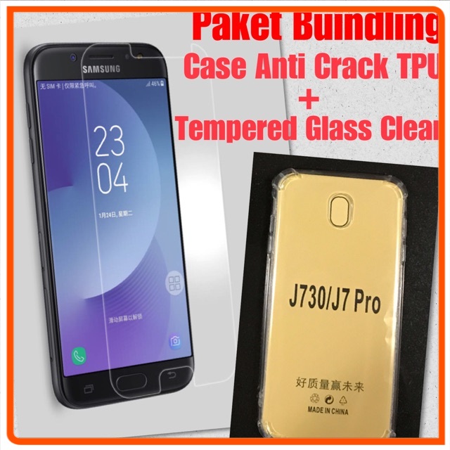 Paket Biindling Case Anti Crack TPU & Tempered Glass Clear Samsung J7 Pro 2017 (J730)