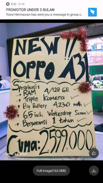 OPPO A31 2020 RAM 4GB ROOM 128GB GARANSI RESMI OPPO 1 THN