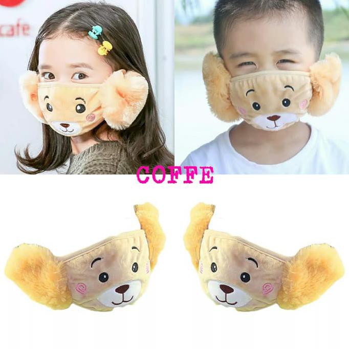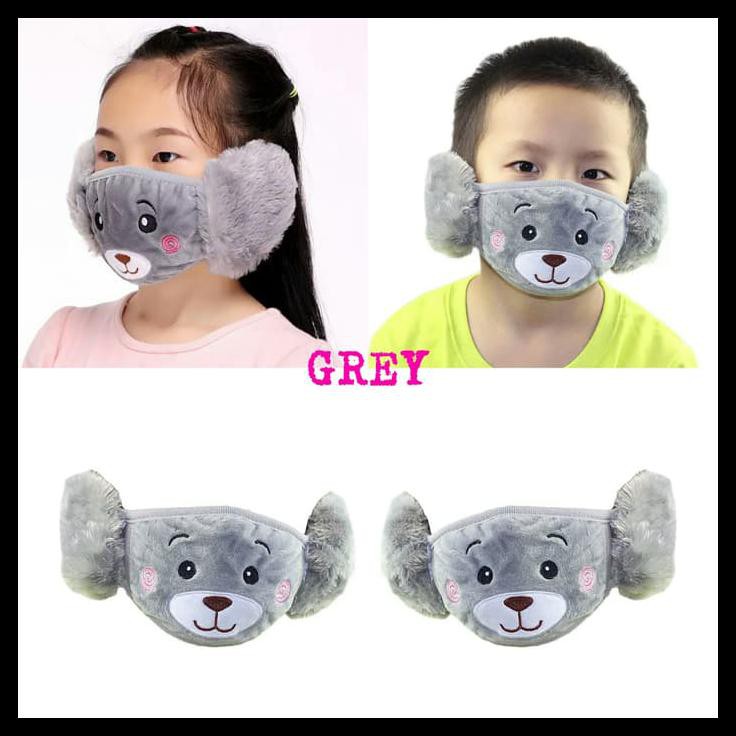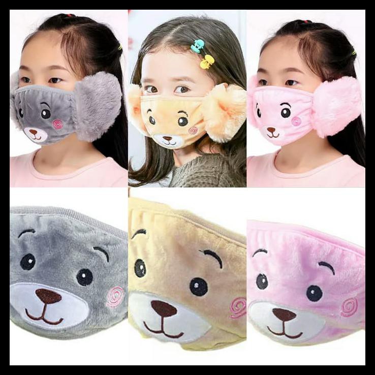 HARGA GROSIR MURAH FLASH SALE EARMUFF MASK MASKER MULUT TELINGA ANAK IMPORT KARAKTER PANDA WINTER