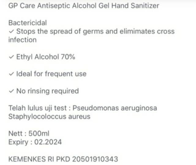 GP CARE ANTISEPTIC ALCOHOL GEL HAND SANITIZER FOR CORONA TERMURAH