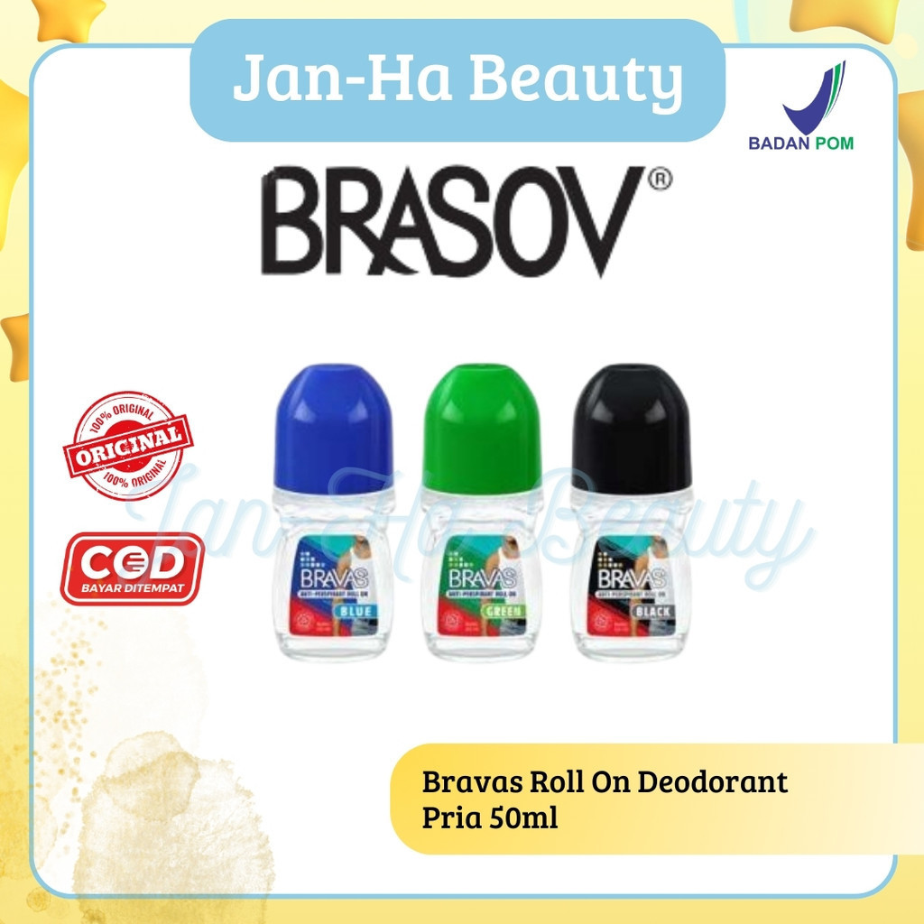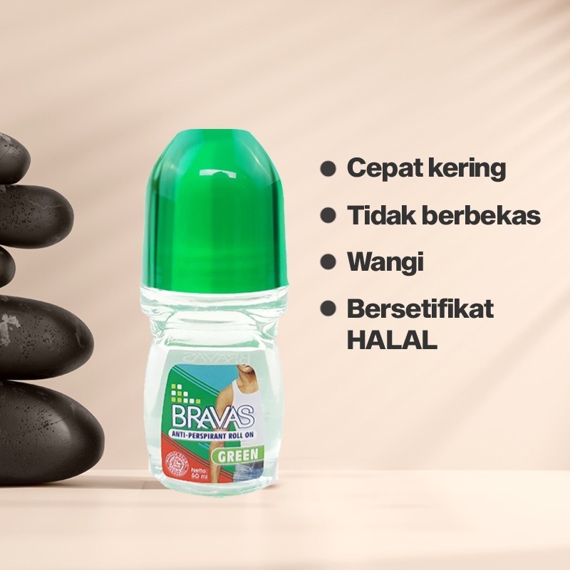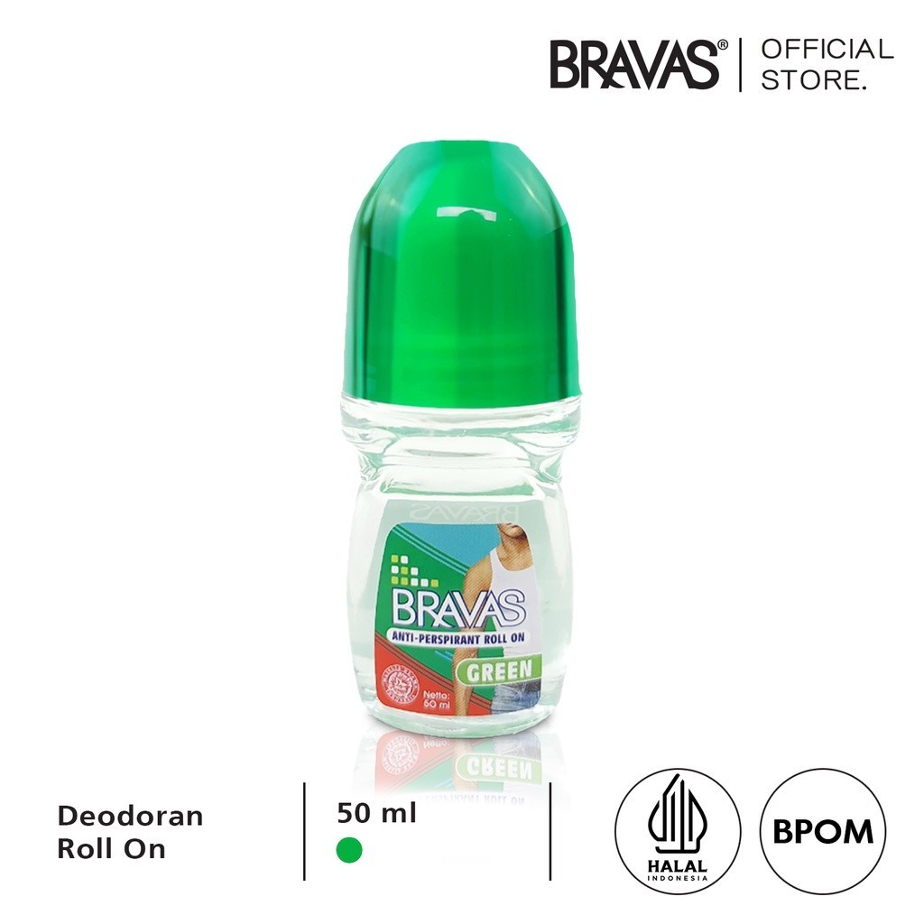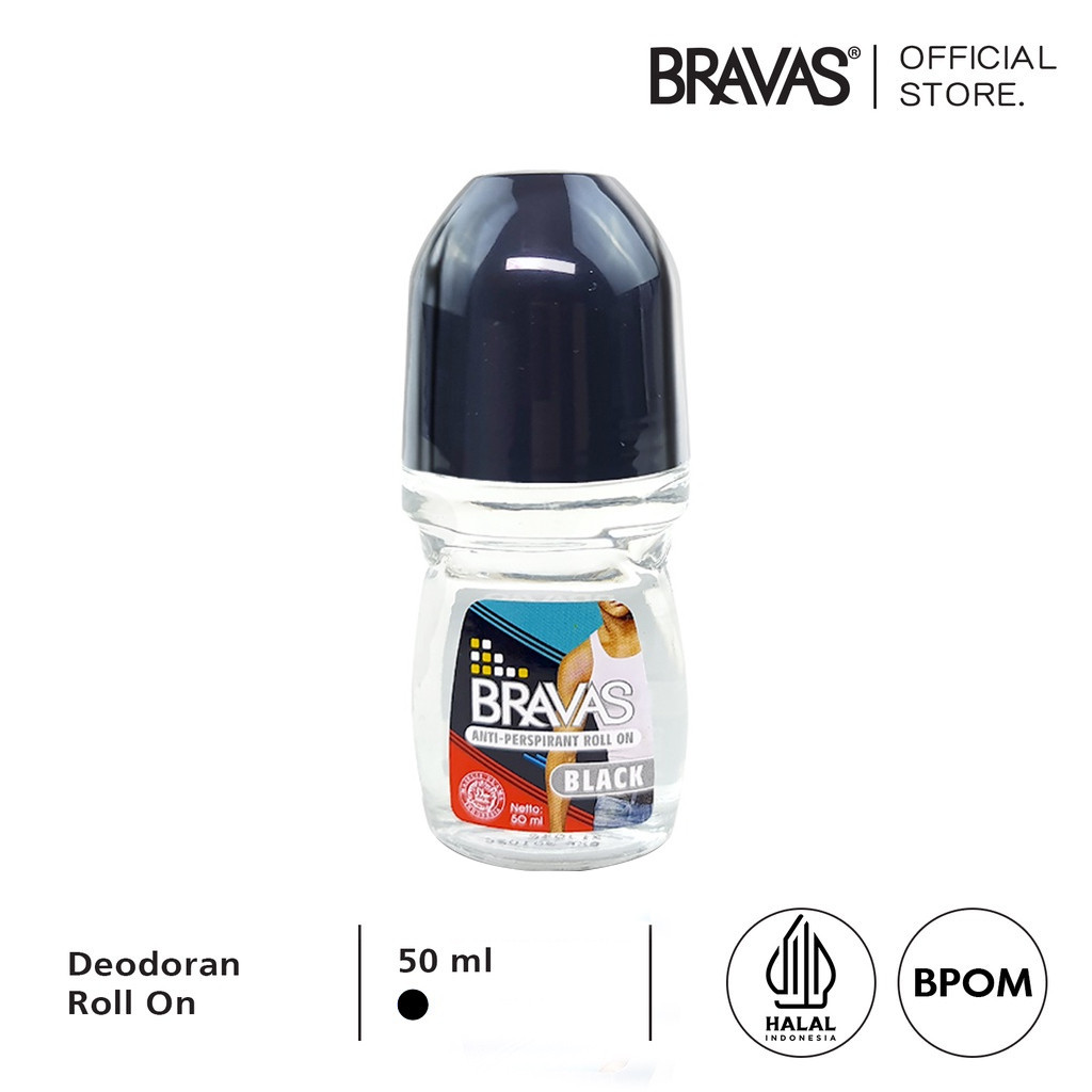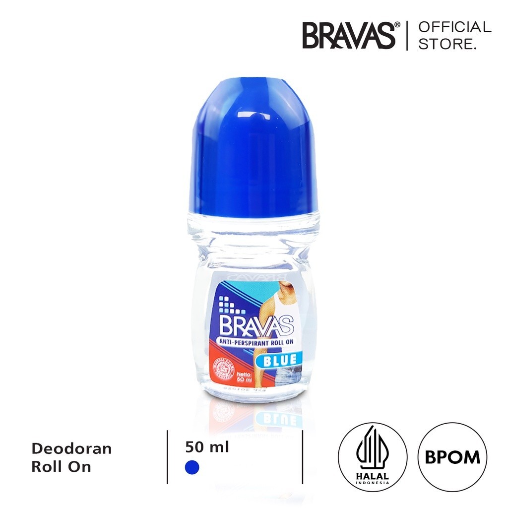 BRAVAS Roll On Deodoran Pria 50 ML Anti Keringat / Lengket /Noda Perspirant Deodorant Original Halal