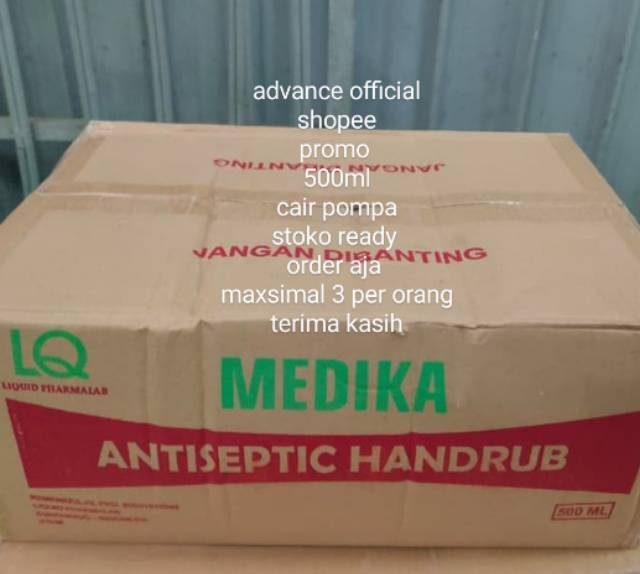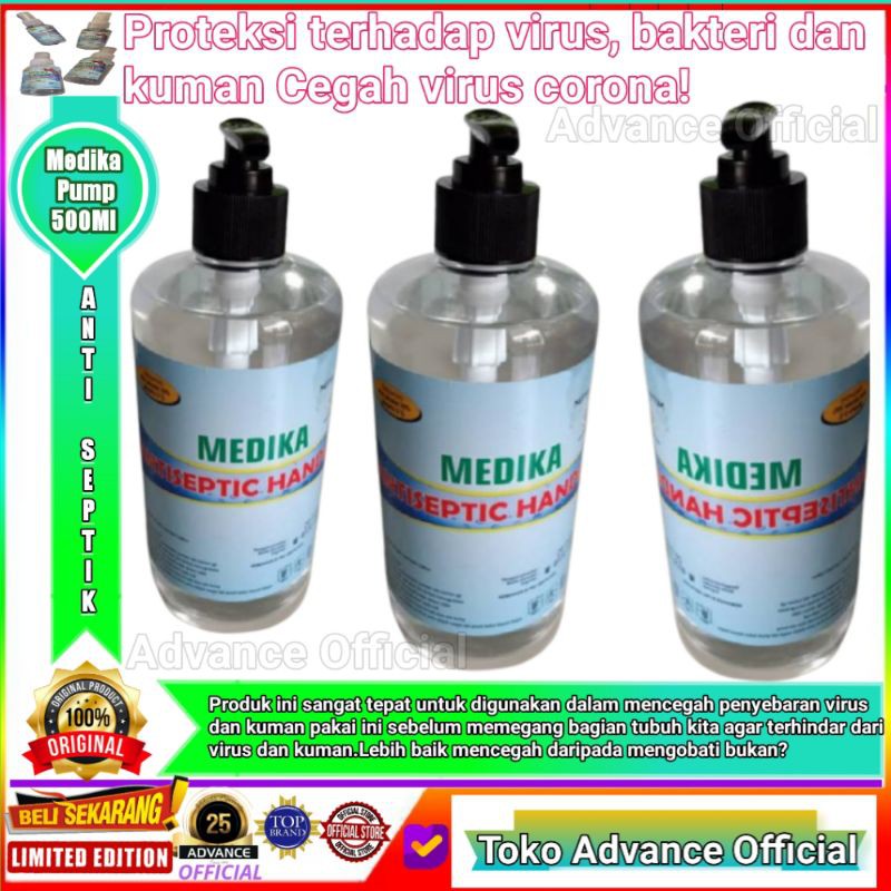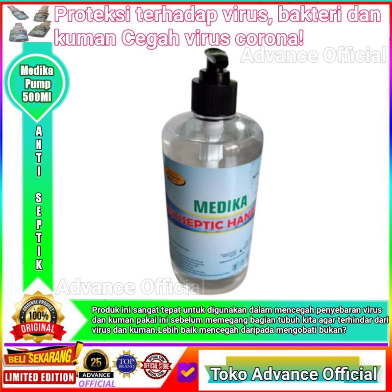 Antiseptic Handrub Hand Sanitizer 500 ml Cairan Liquid Medika botol pompa original