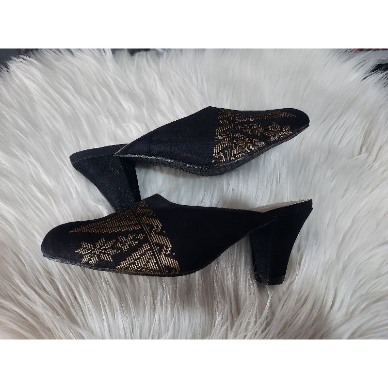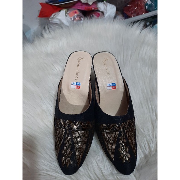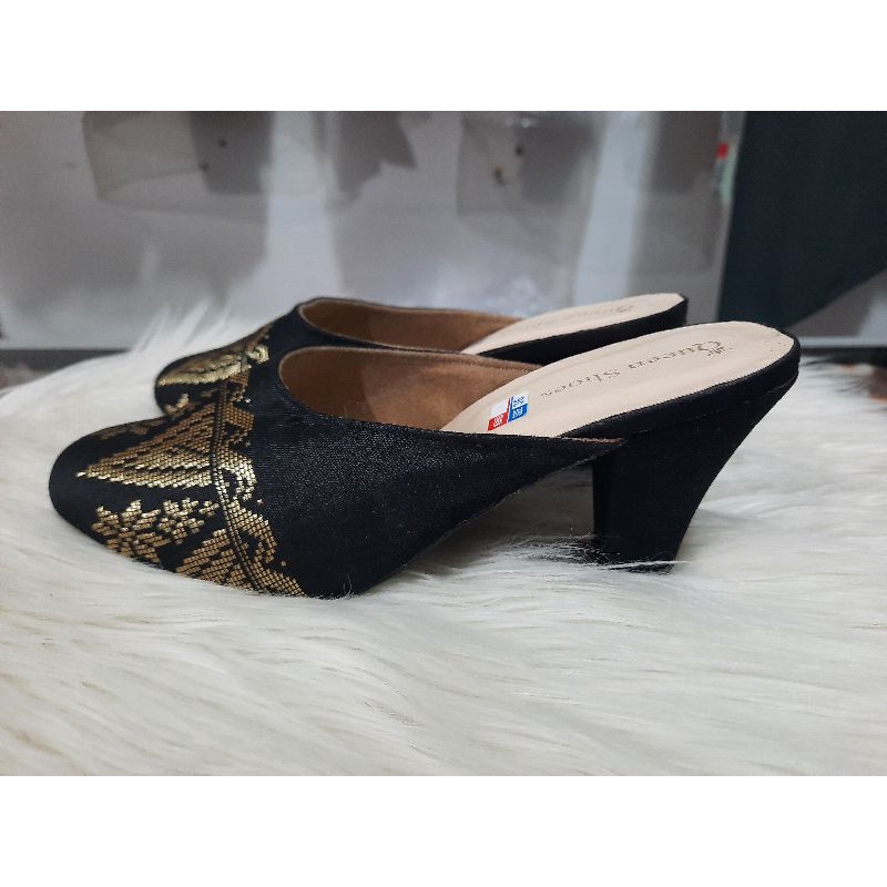 produksi sendal kain songket - sendal khas padang - kain songket alsi elegan and fashionabel