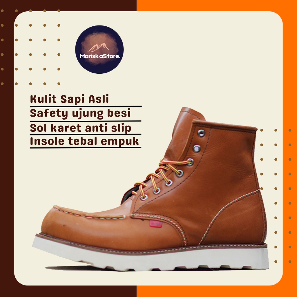 promo sepatu safety boot Moctoe sepatu pria sepatu kulit mahal kulit sapi asli safety ujung besi realpic
