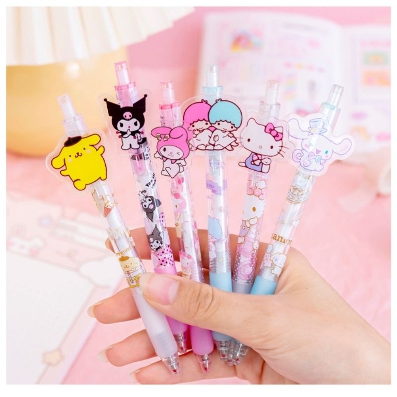 pulpen tekan lucu gambar kartun snrio kuromi mymelody cinamonroll pompurin hellokitty - pulpen lucu - pulpen aesthetic - pulpen gel mekanik