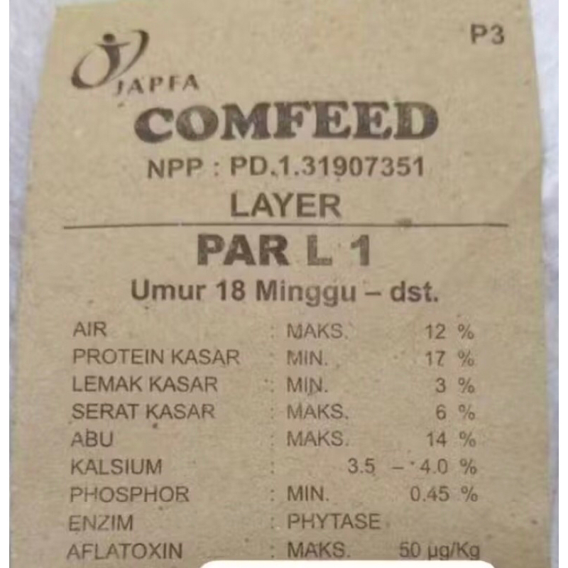 pur ayam petelur par L1 pakan ayam betelur pakan ayam petelur par - L 1 tepung comfeed