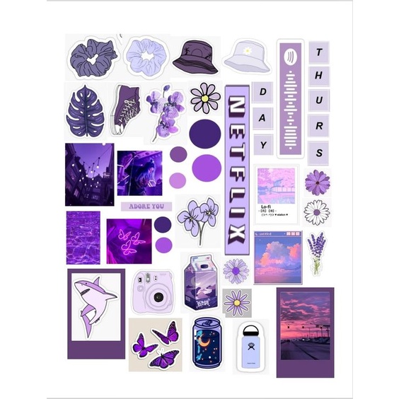 purple theme sticker for phone/laptop/scrapbook journal (stiker)