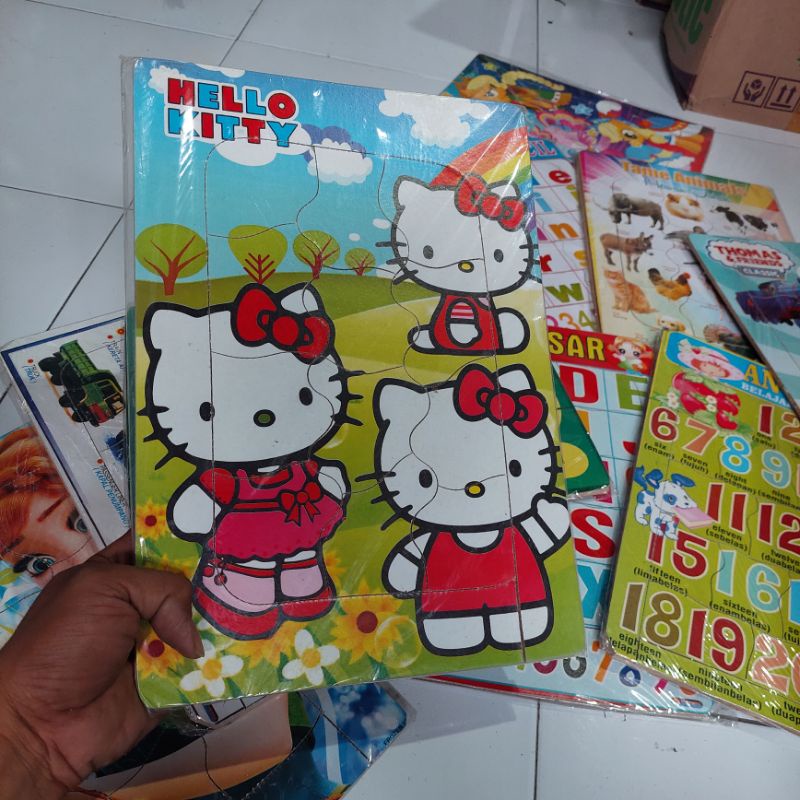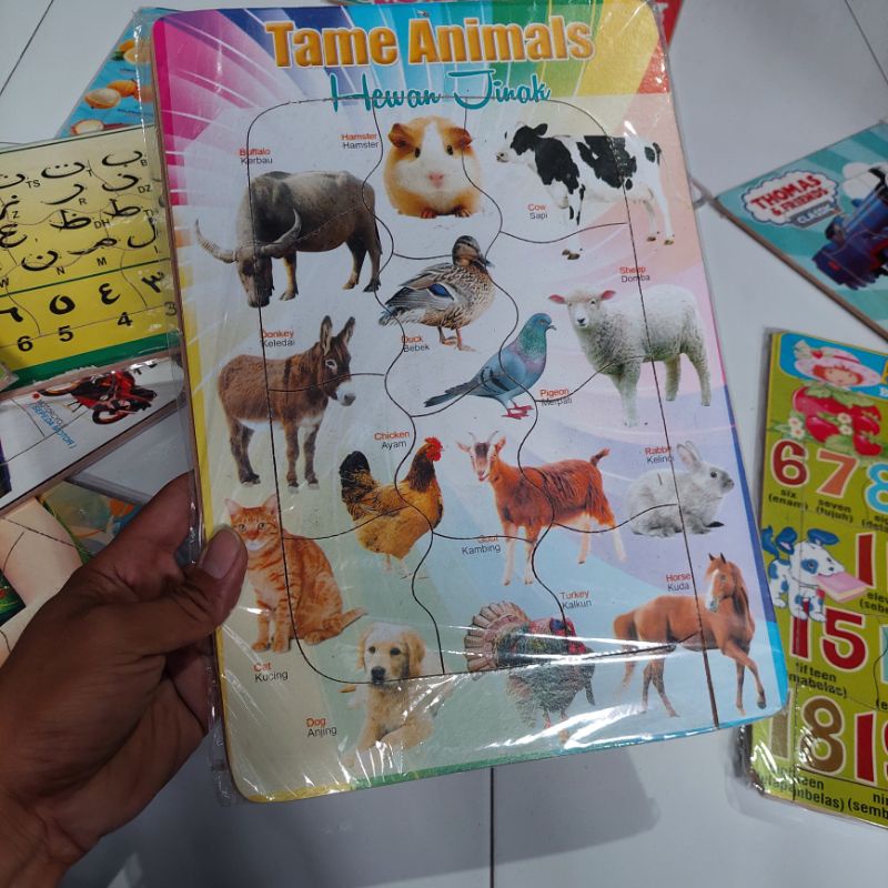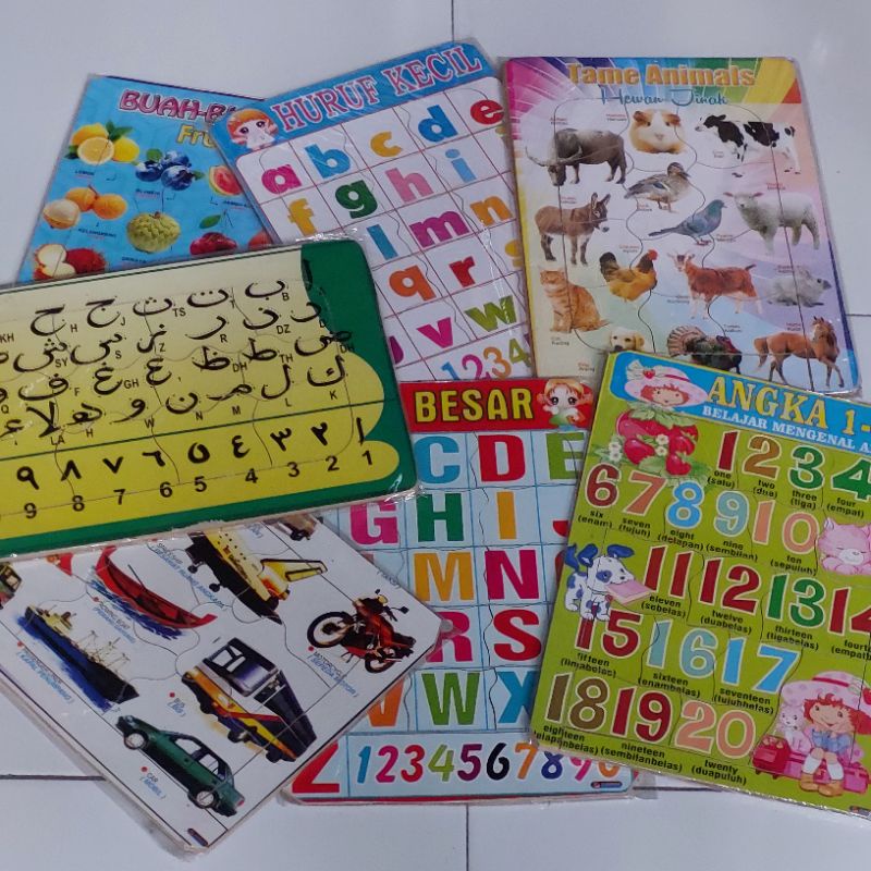 puzzel puzel edukasi bongkar pasang karakter lucu - hijaiyah - buah - huruf - angka - hewan - P KAYU