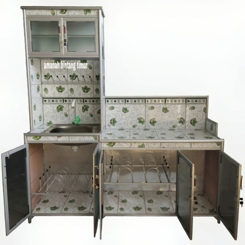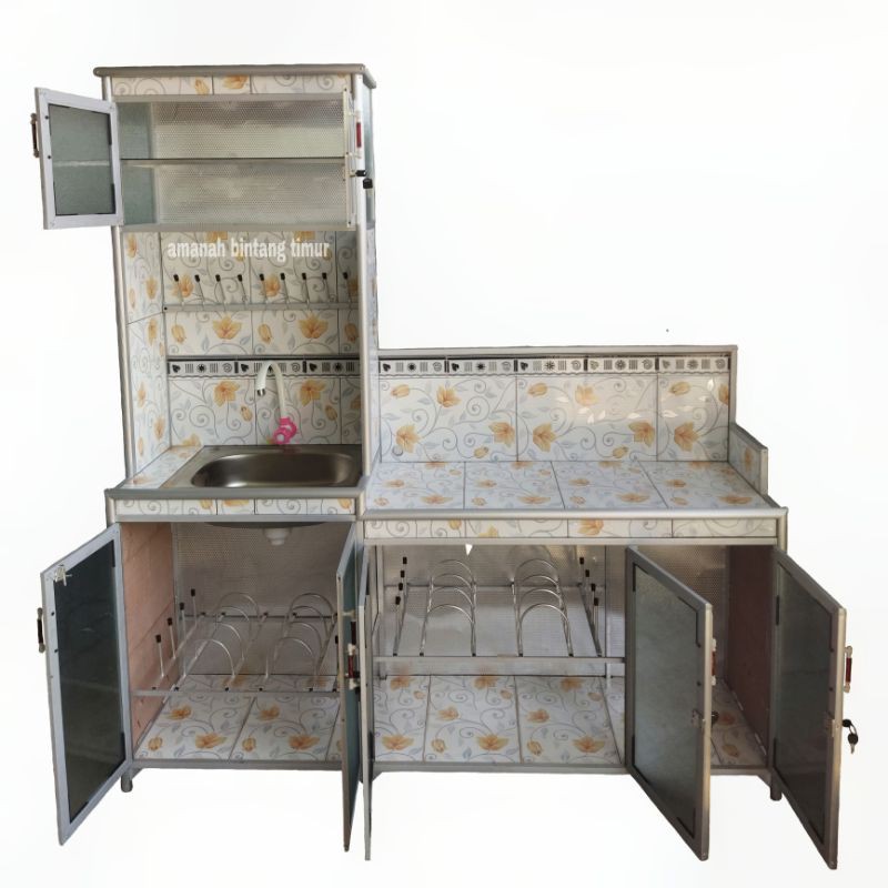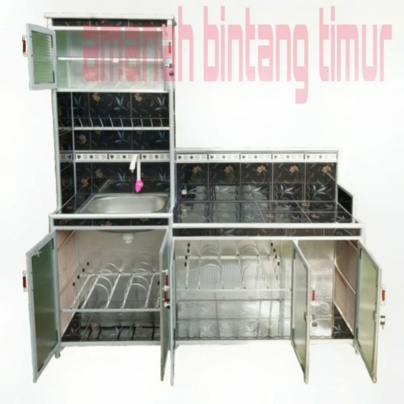 rak dapur meja wastafel tempat cuci piring rak kompor rak piring 3in1 alumunium