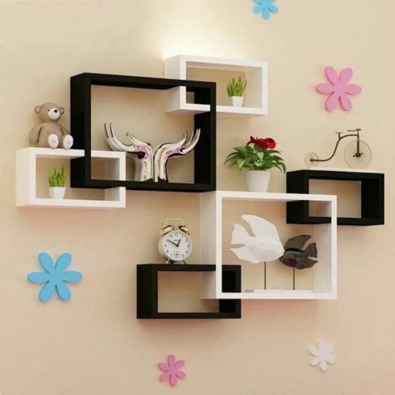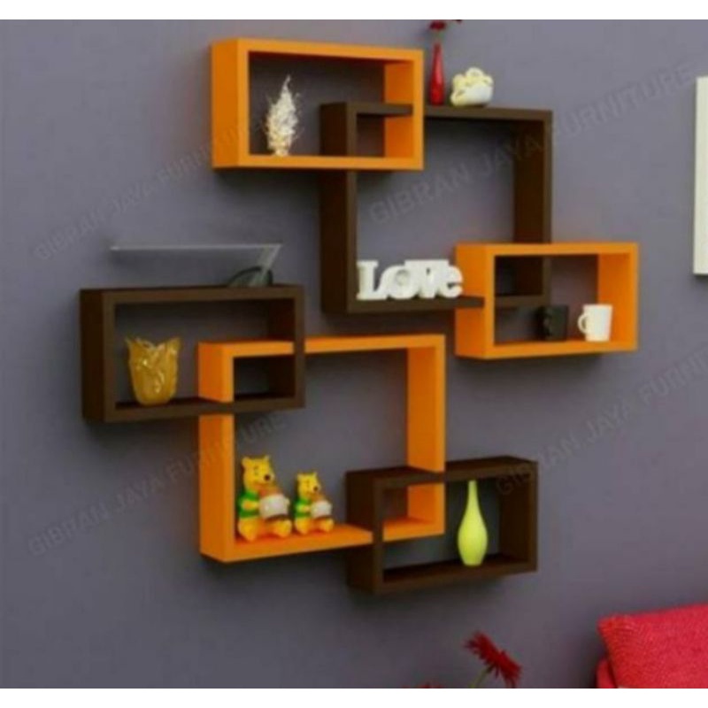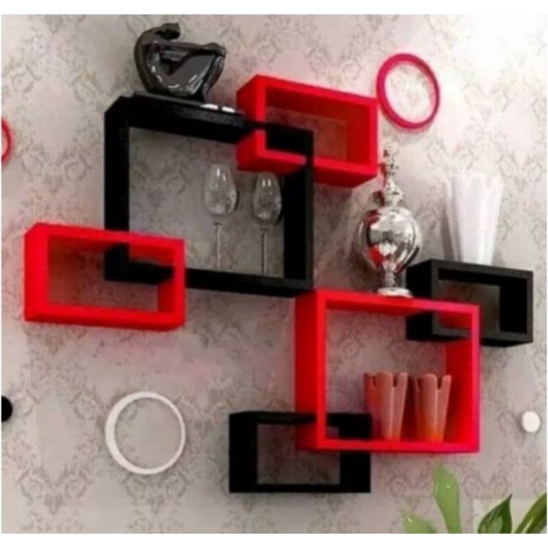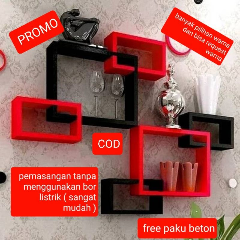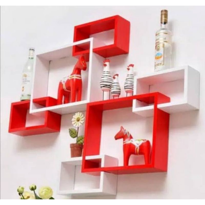 rak dinding petak minimalis 3 pcs trend kekinian hiasan dinding / dekorasi rumah / furniture