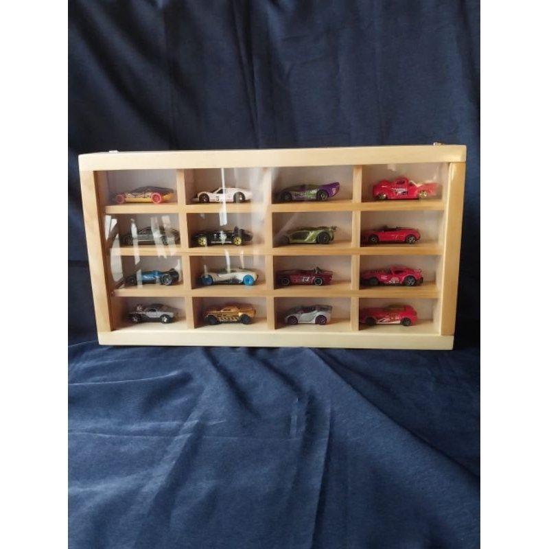 rak hotwheels kayu isi 16 +akrilik
