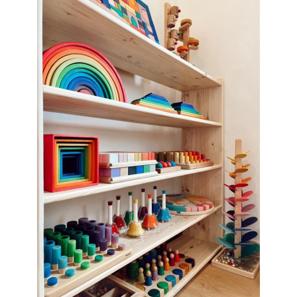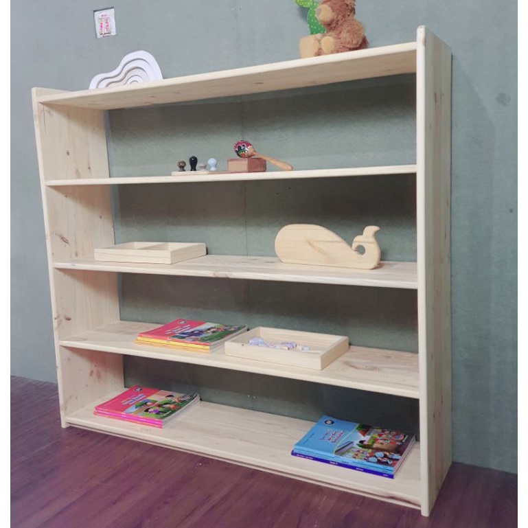 rak kayu,rak susun montessori,rak mainan montessori 4 susun