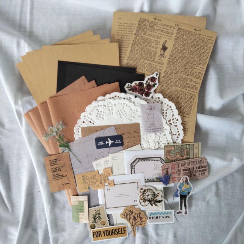 random journaling kit vintage aesthetic series paper bundle mail kit - penpal kit mading