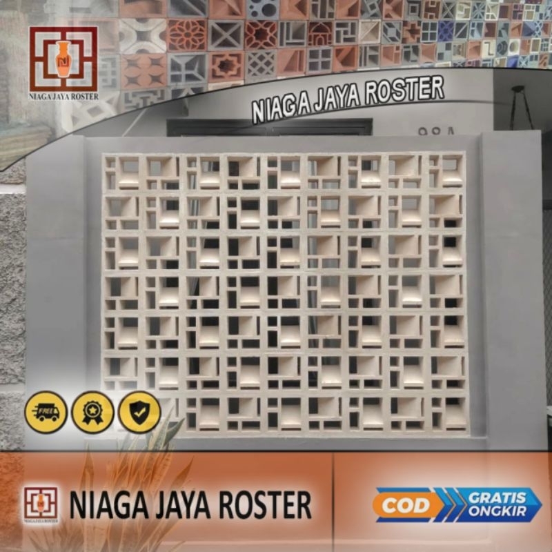 NIAGA JAYA ROSTER - Roster Beton Minimalis Ukuran 20x20cm, Loster Putih, Ventilasi Udara