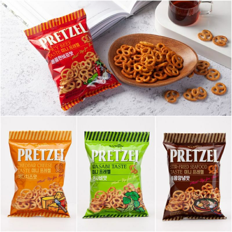 samjin pretzel cheddar cheese/samjin spicy beef/samjin choco