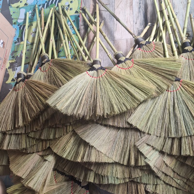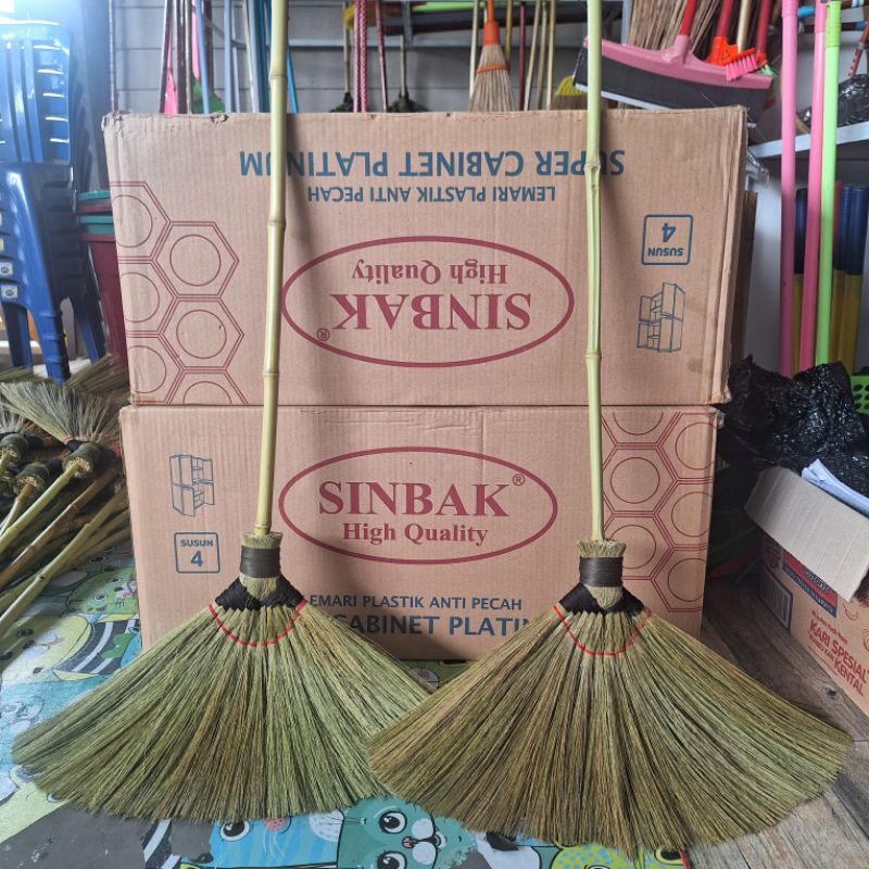 sapu lantai tebal rayung ijuk jerami warna hijau dan coklat