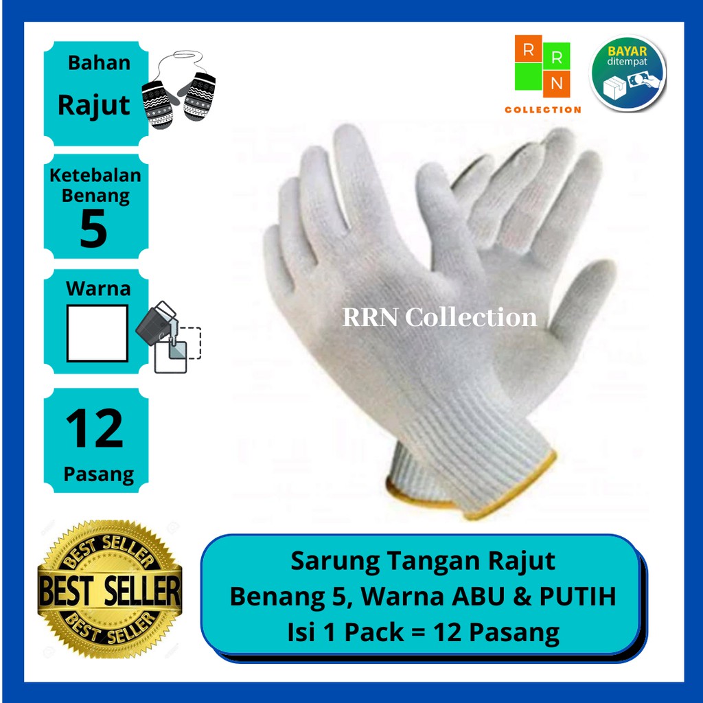sarung tangan kain 1 lusin benang 5/sarung tangan tebal/sarung tangan abu/sarung tangan kain putih
