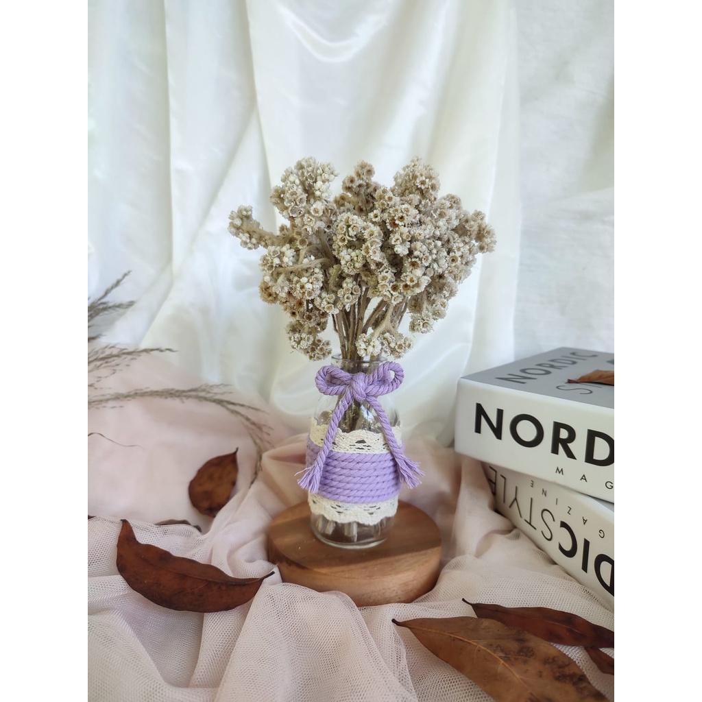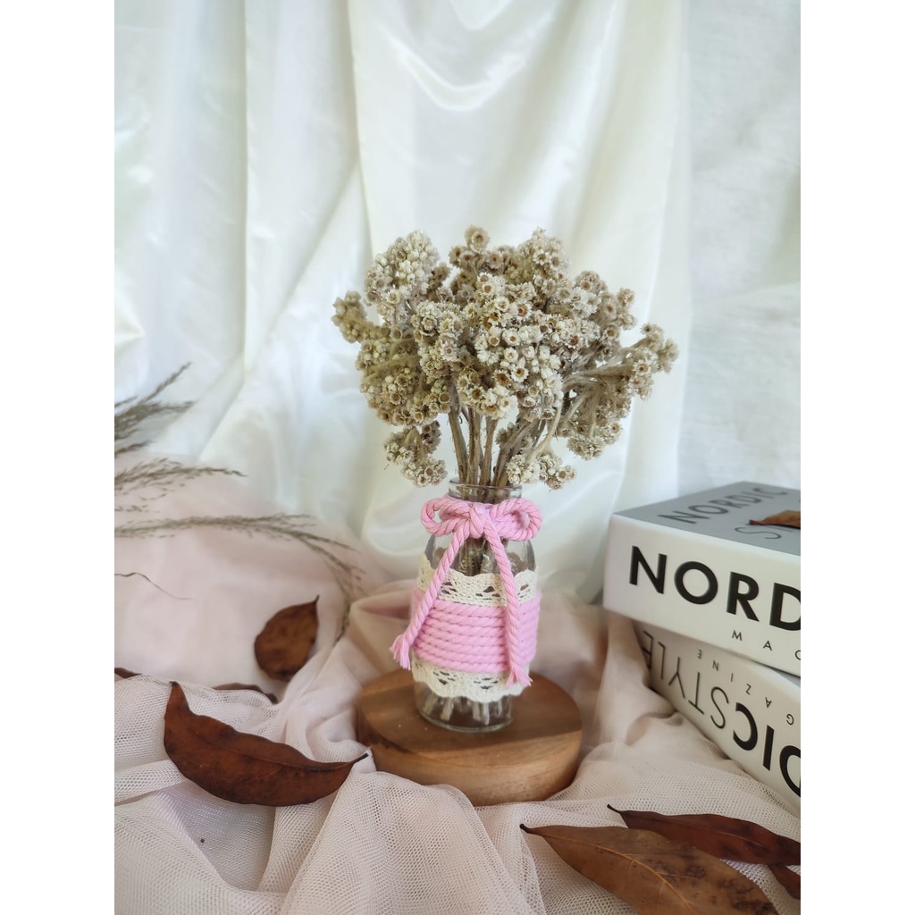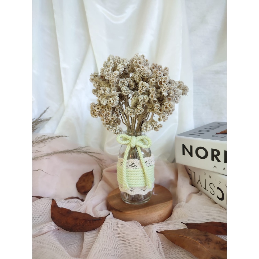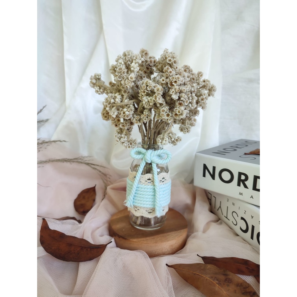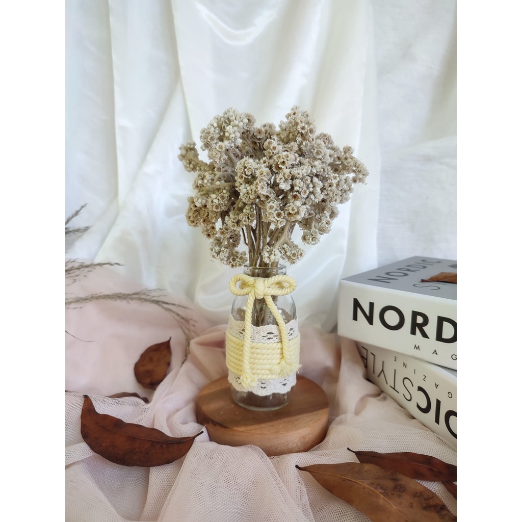 satu set bunga kering edelweis | vas bunga | bunga edelweis | hampers | hadiah ulangtahun | dried flowers