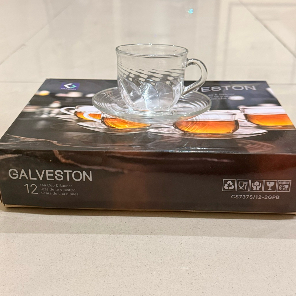 satu set cangkir teh kaca isi 12 pcs