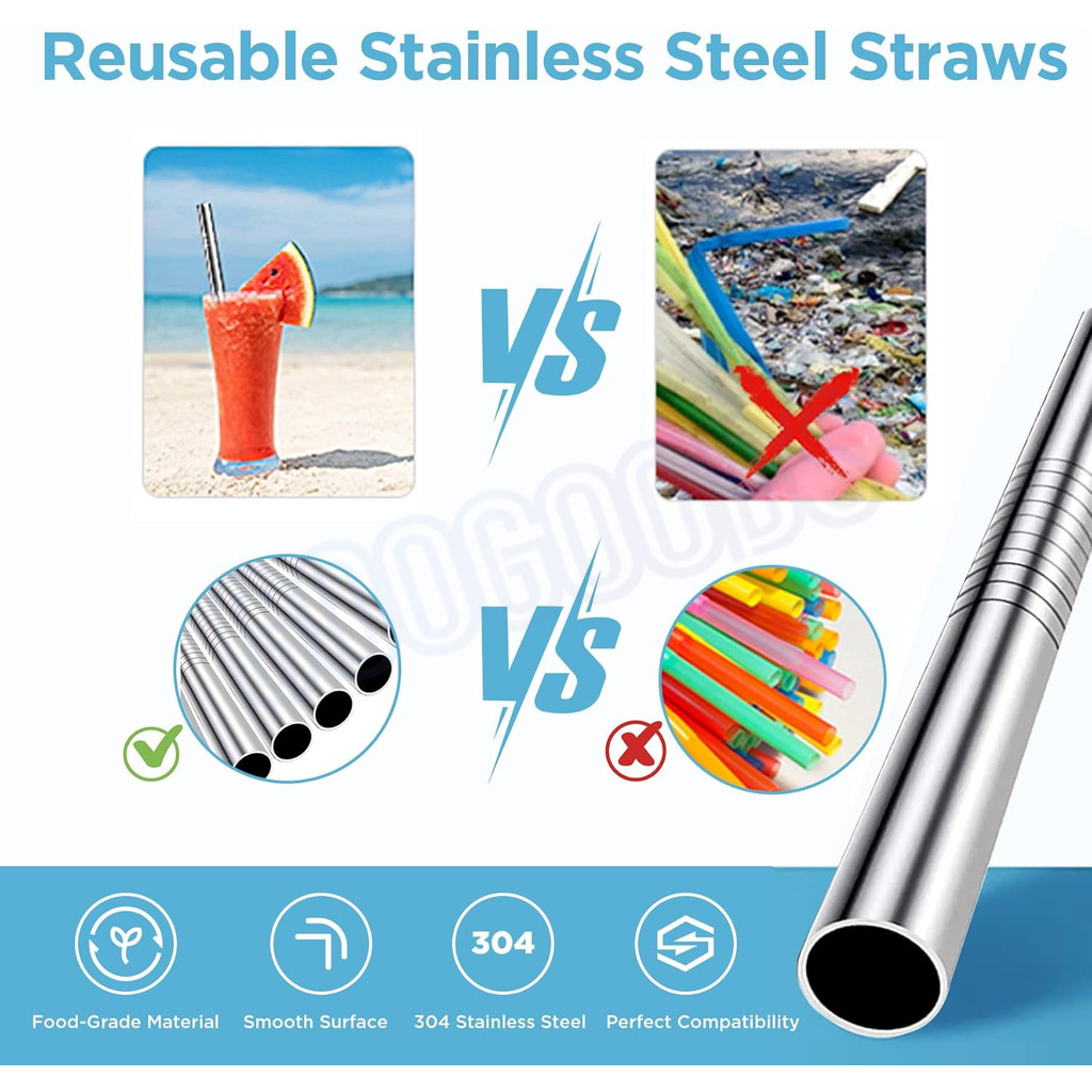 sedotan stainless lurus 21.5cm sedotan minum bengkok / sikat sedotan brush straw cleaner stainless/Sedotan Bengkok Dan Lurus Stainless Steel