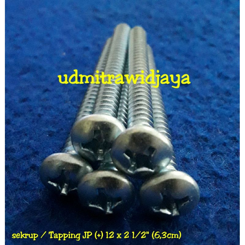 sekrup skrup scrup Tapping JP + 12 x 2 1/2" panjang 6,3cm sekrup kepala bulat