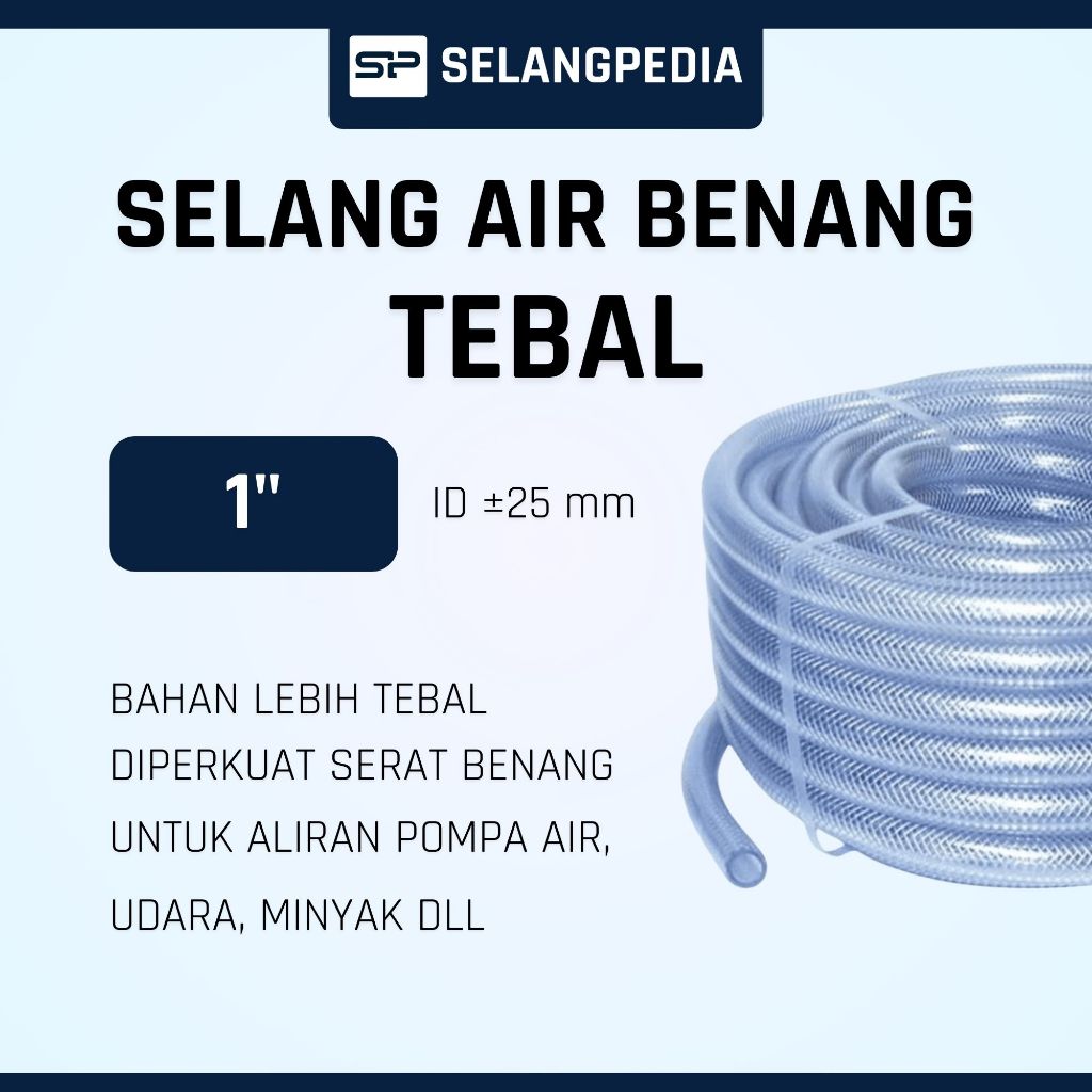 Selang Air Benang Serat TEBAL 1” inch Hose Keran Taman Cuci Motor Mobil Murah Per Meter