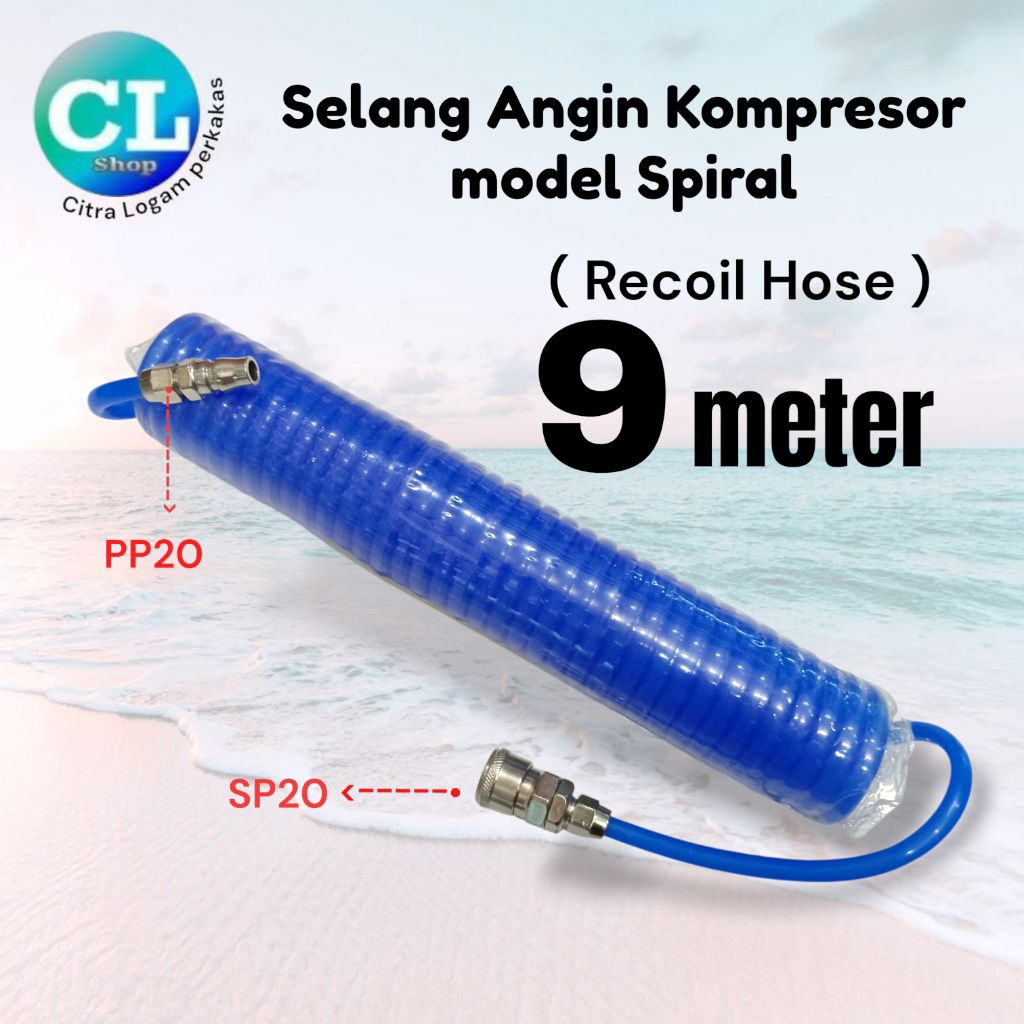 selang angin kompresor spiral 9m + coupler selang recoil tambal ban air duster spray gun tekiro