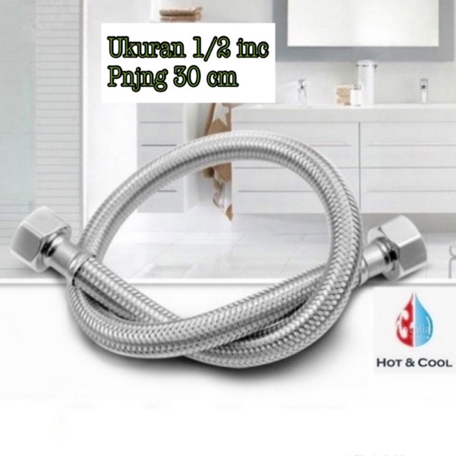 selang closed 1/2 Inc panjang 30 cm stainless steel 304 fleksibel anyam westafel dan kloset ukuran 30 cm/ Flxbl kuningan 30 cm flxbl anyam selang closet selang anyam selang air