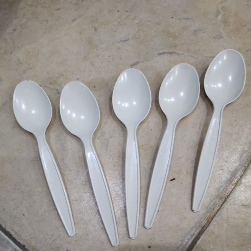 sendok nasi kotak panjang bening putih / sendok makan plastik bening murah tebal sekali pakai