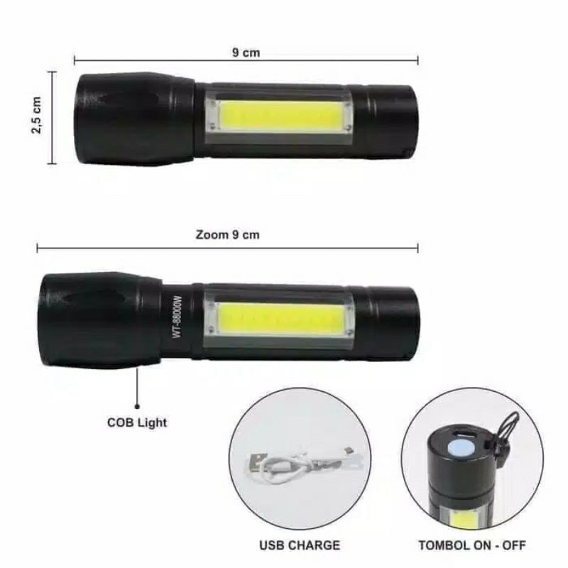 senter cas anti air mini portable senter LED COB lampu emergency senter satpam polisi security SH LC07