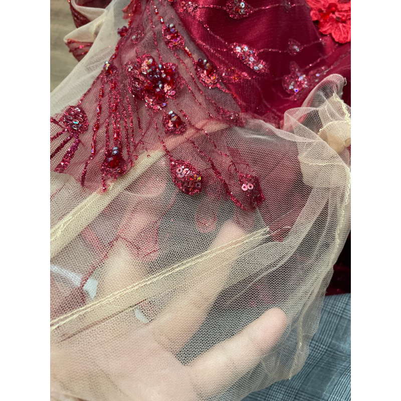 sepasang gaun mama big size , ukuran jumbo , dress mom merah