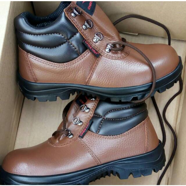 sepatu cheetah 7106 C coklat dan Hitam / Sepatu Kerja Safety Proyek Lapangan Cheetah 7106 H/C / Safety Shoes Cheetah Original Murah