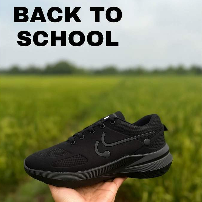 sepatu sekolah hitam / Sepatu Sneaker Sport Shoes Import / sepatu hitam full pria wanita