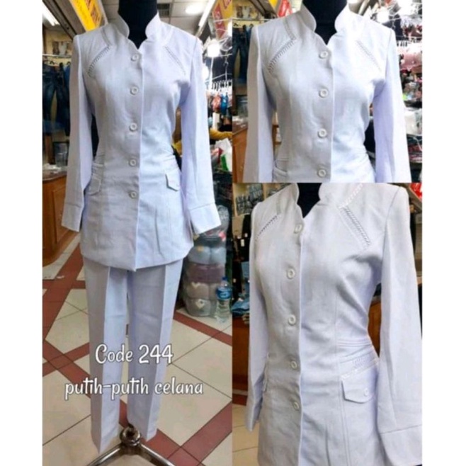 seragam pns wanita putih putih celana/ seragam putih putih wanita/ seragam asn wanita putih celana/ seragam kantor/ baju dinas wanita putih putih celana