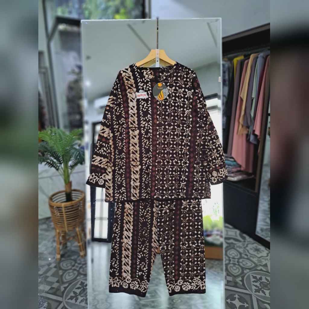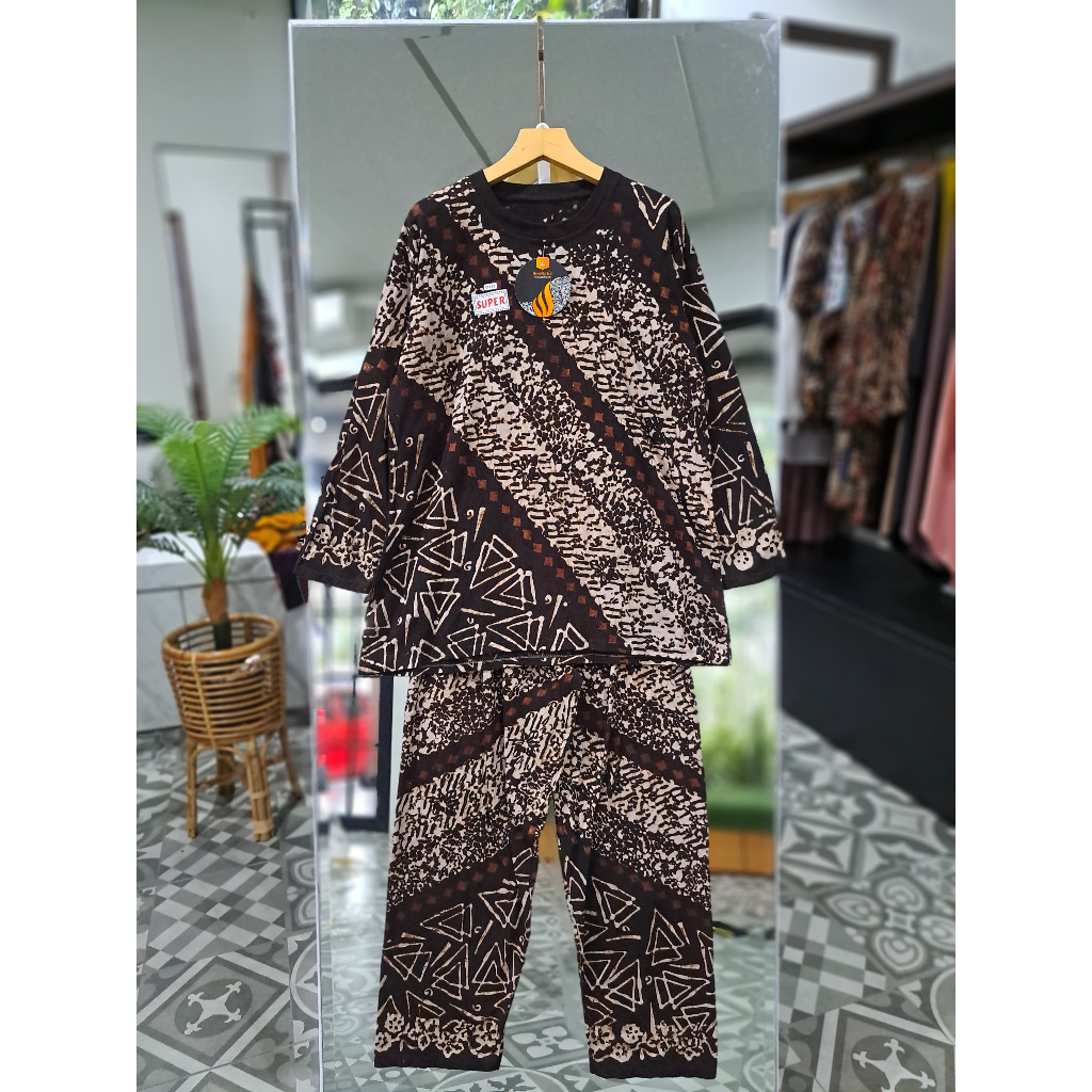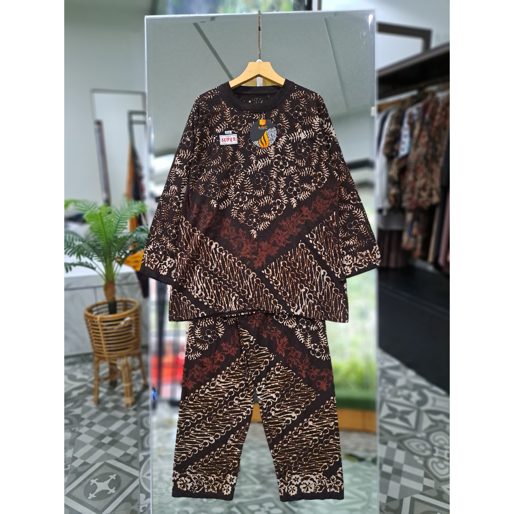 Setelan Bahan Kaos Combed Motif Batik Sogan Terbaru Ori BeeBatik Pkalongan