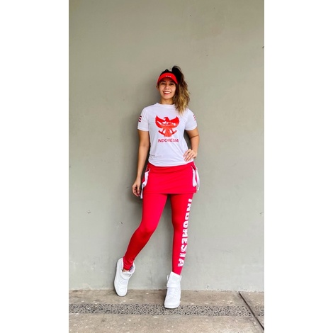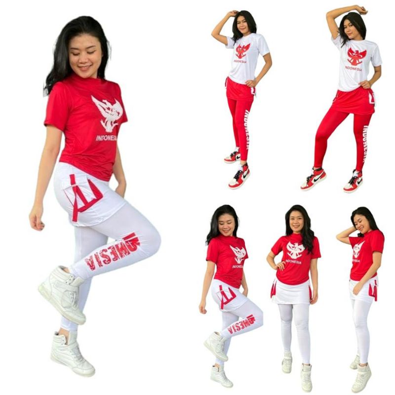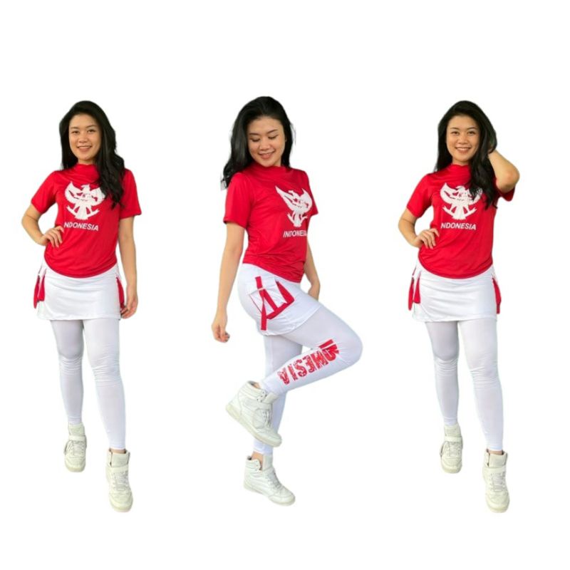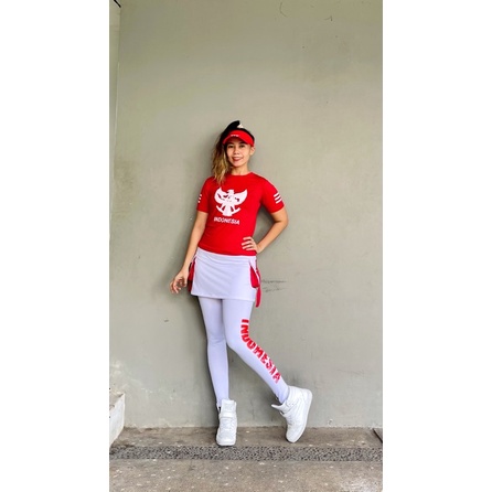 setelan baju olahraga rok merah putih / setelan baju senam merah putih