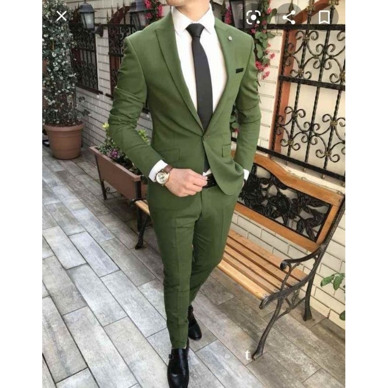 setelan jas formal pria/set jas kantor/set jas wedding/setelan jas pria warna hijau botol