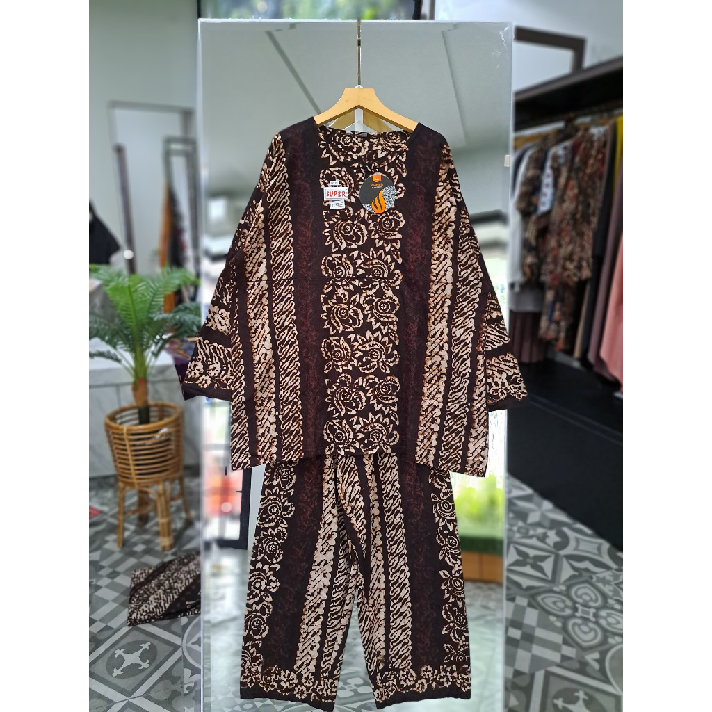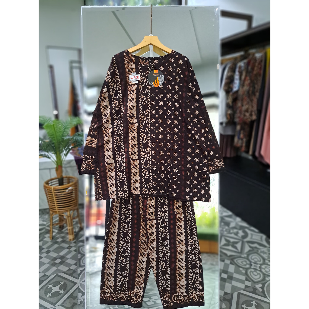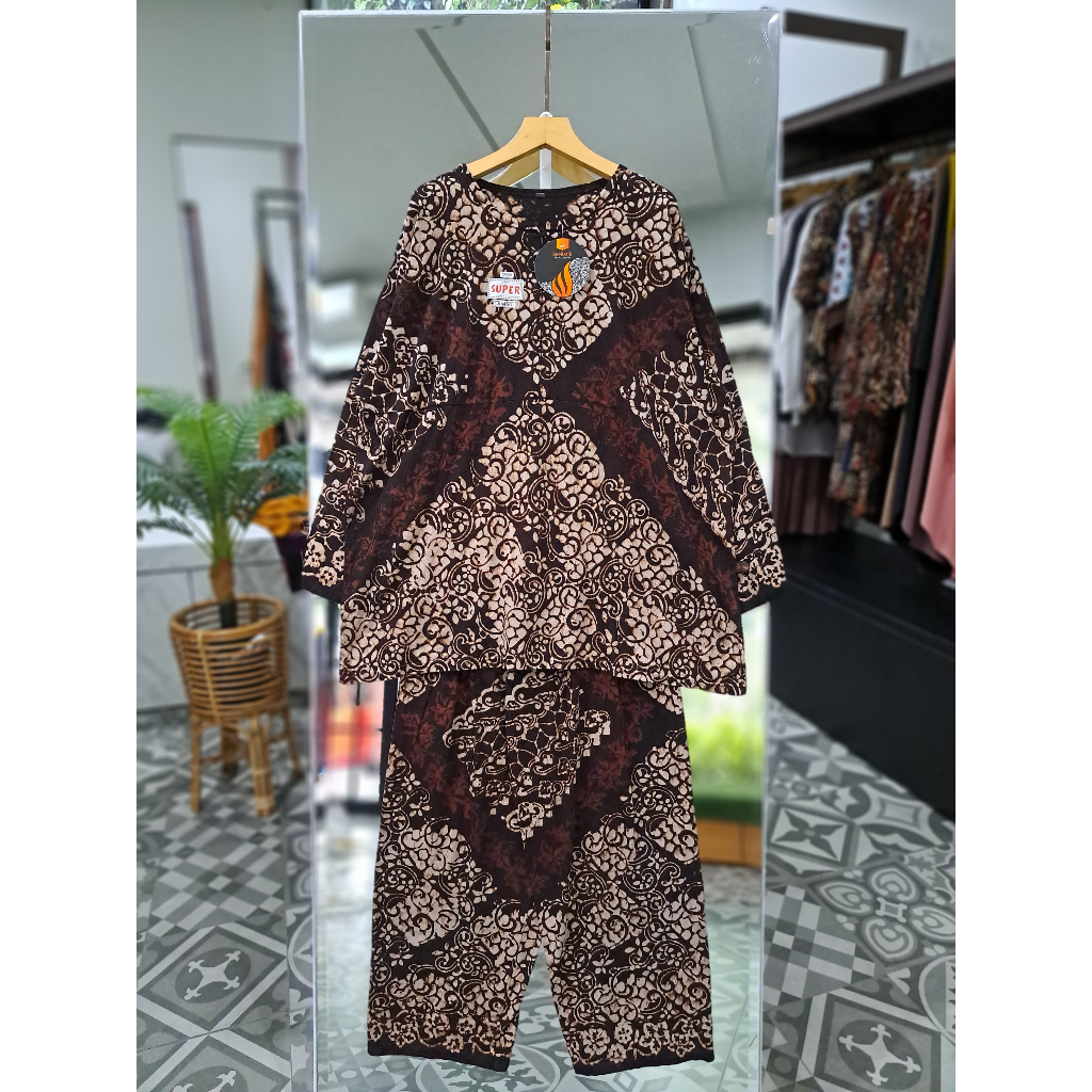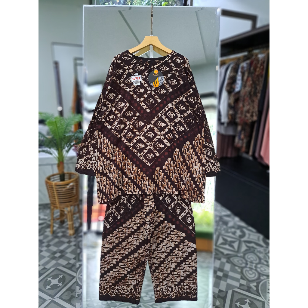 Setelan Jumbo Bahan Kaos Combed Motif Batik Sogan Terbaru Ori Bee Batik Pkalongan
