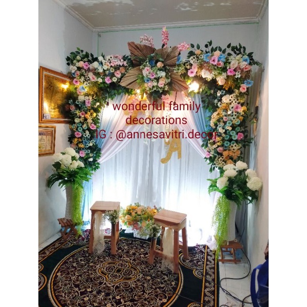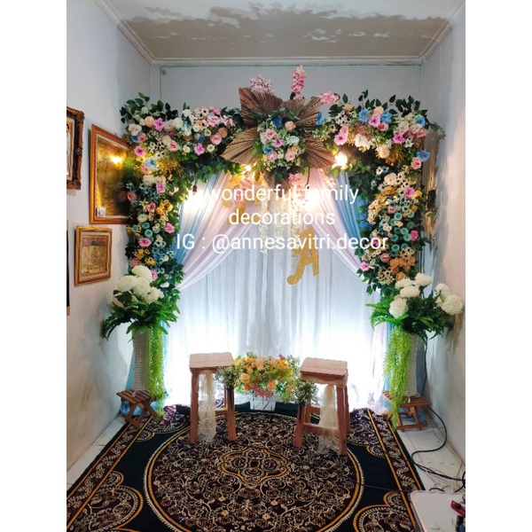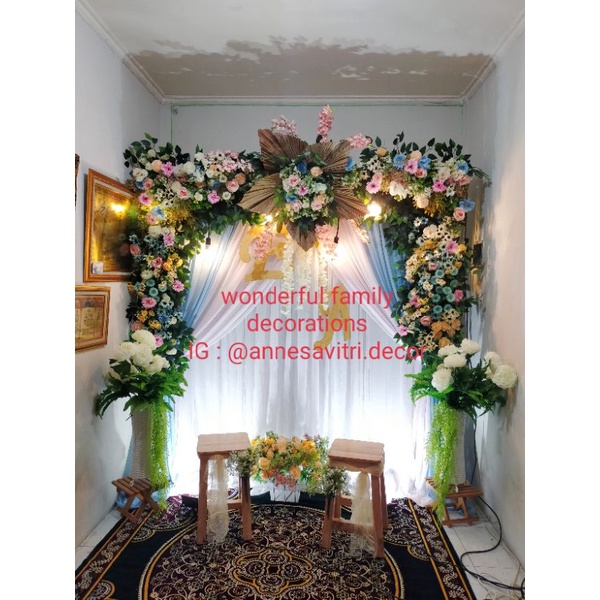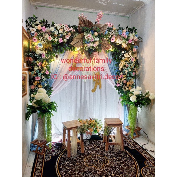sewa dekorasi backdrop pelaminan/akad nikah/pernikahan rustic premium 2.2.meter