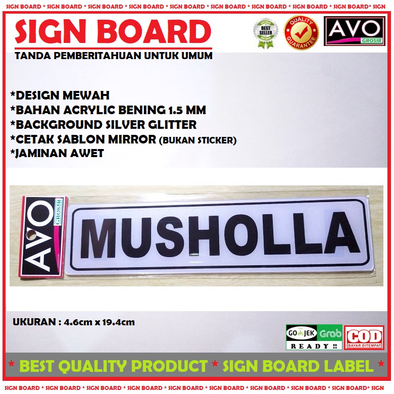 sign label MUSHOLLA acrylic sticker sign board tanda ruangan