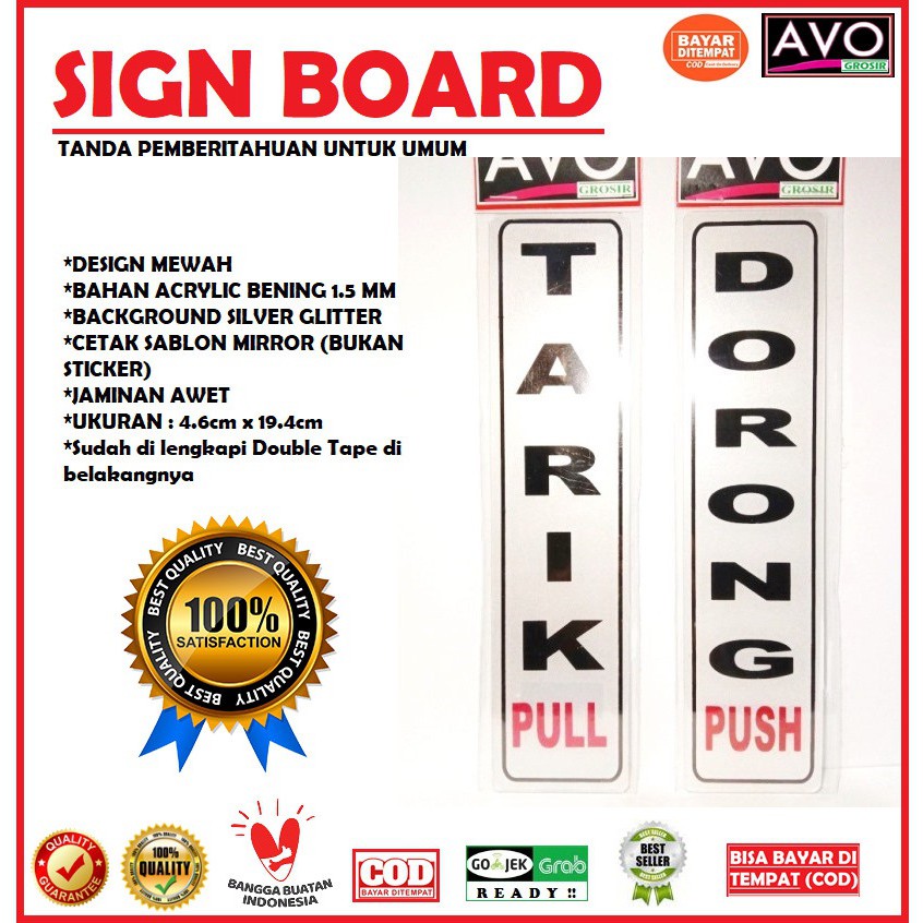 sign label sticker DORONG TARIK PUSH PULL acrylic sign board