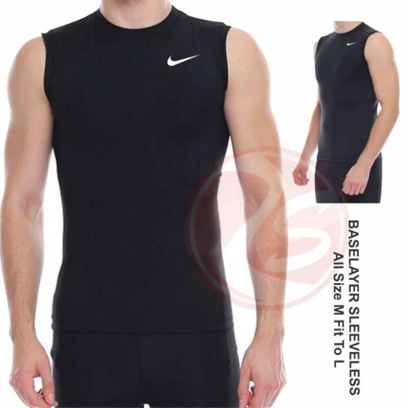 singlet bola hitam manset tanpa lengan baselayer sleeve less kaos dalam pria lekbong