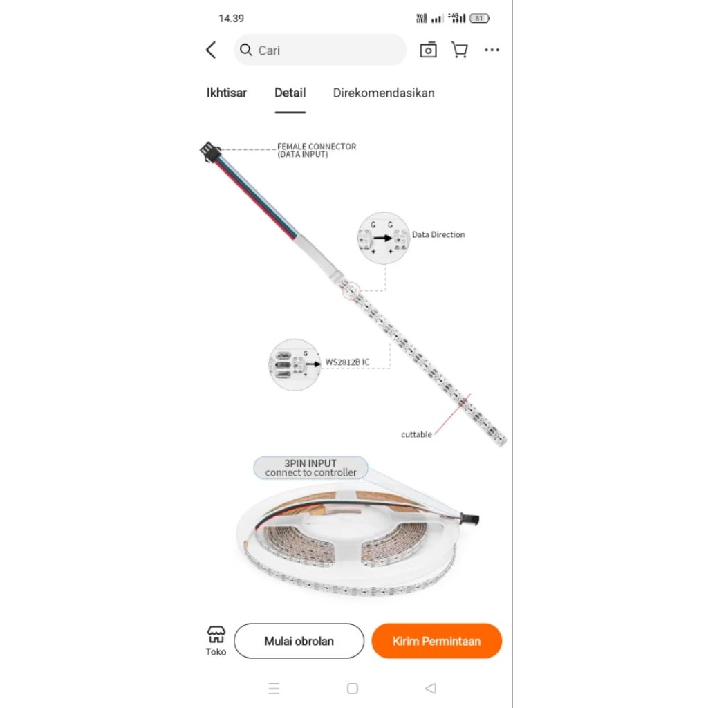 smart led rgb ws2812b 5v 160 dan 200 led permeter 28.8 watt dan 36 watt permeter ws2812b
