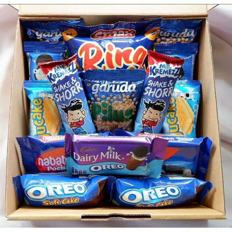 snack box biru / hampers snack biru /kado ultah /kado wisuda /gift wisuda cantik / box hampers