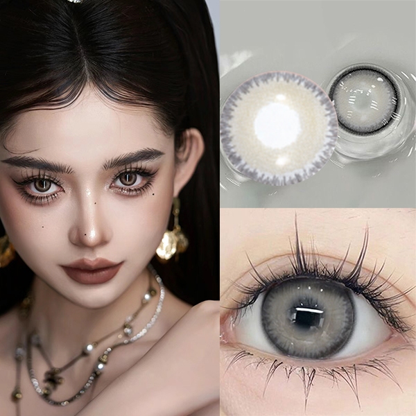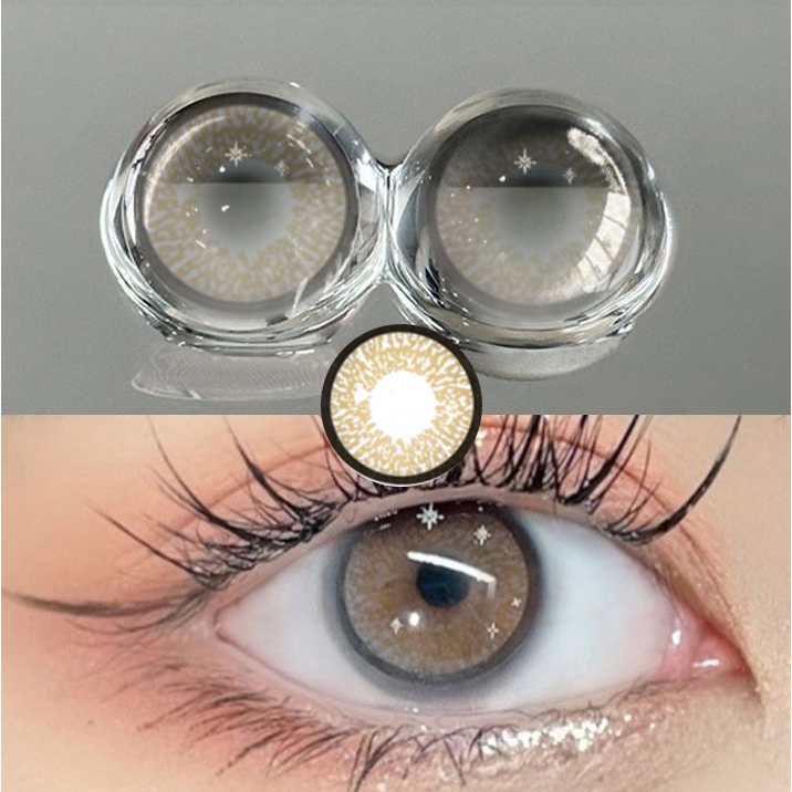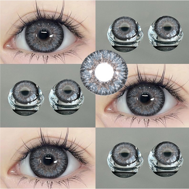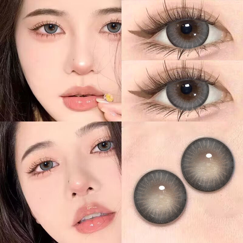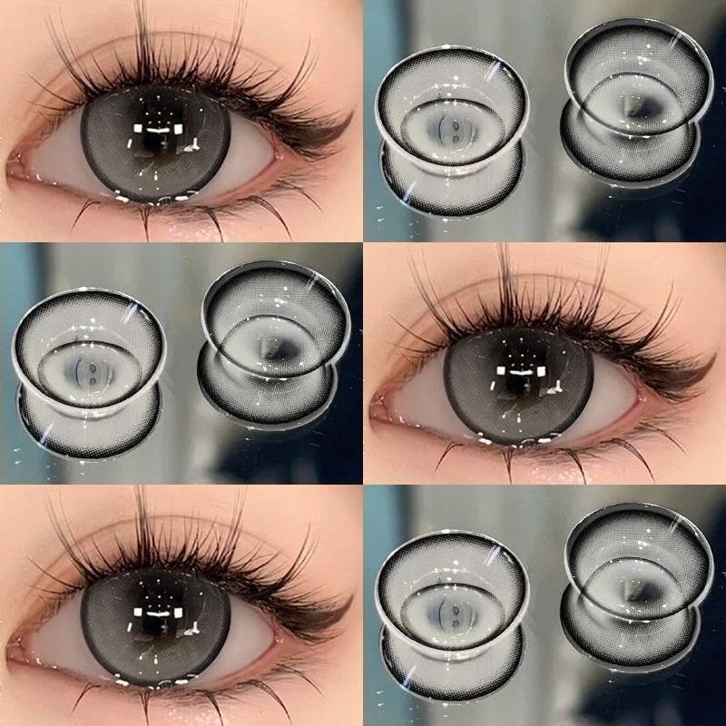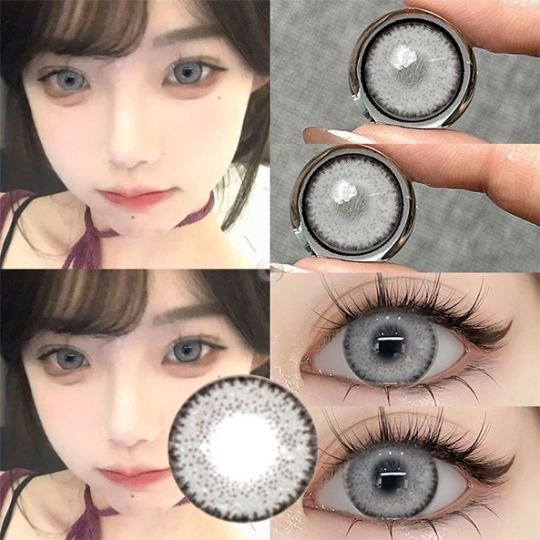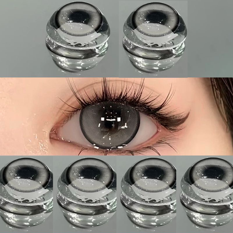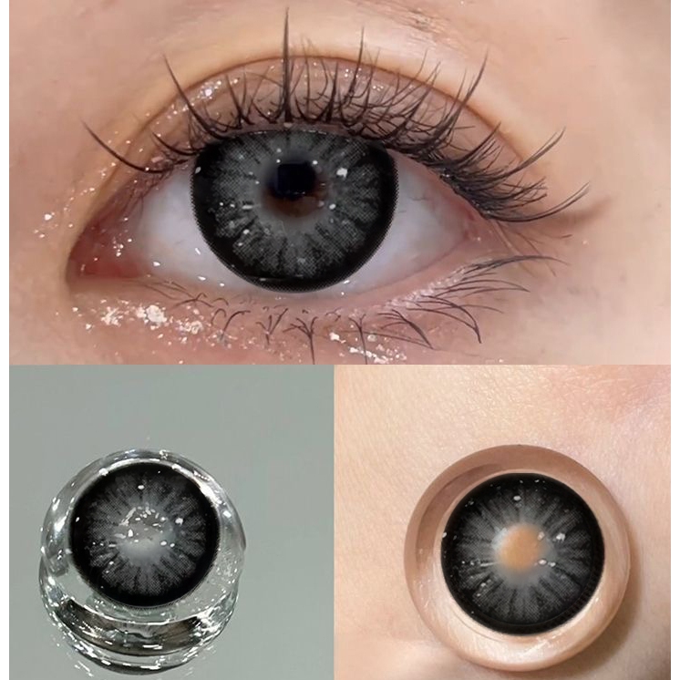 soflens hitam normal Colored Lenses Dengan ikacamata Warna untuk Mata Murid Cantik Tahunan Makeup abu-abu biru blue gray soflens 14 mm normal
