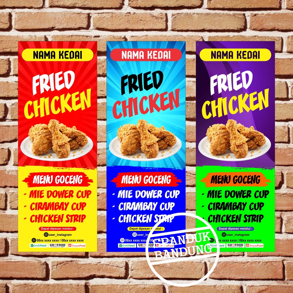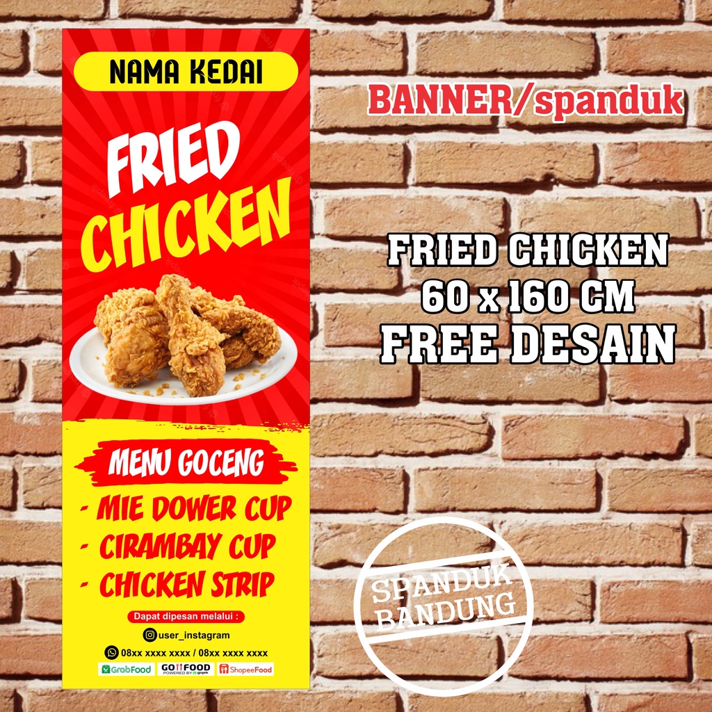 spanduk banner fried chicken / banner fried chicken ukuran 60 x 160 cm/ spanduk free desain