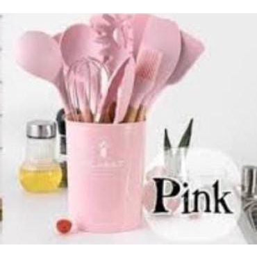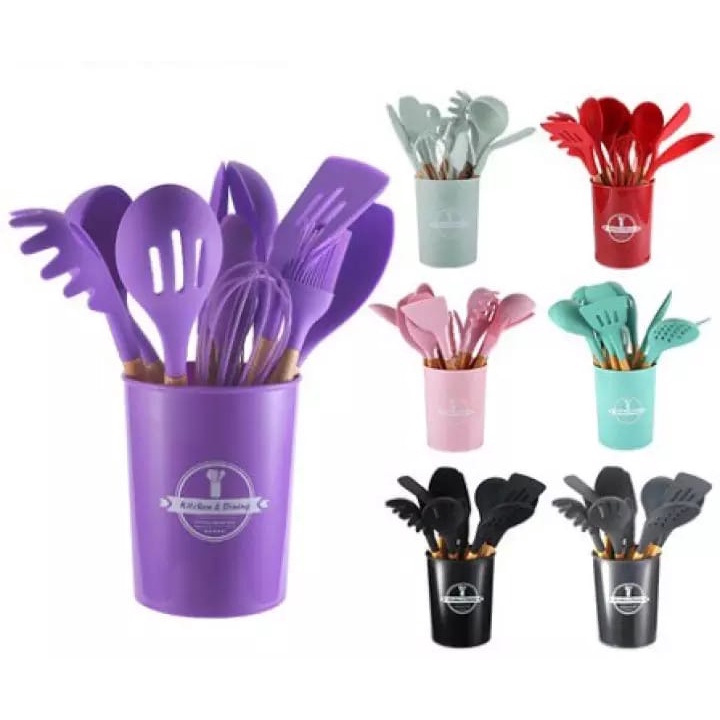 spatula set silikon 12 in 1 SET Silicone Kitchen Set Utensil Spatula Cooking BPA Free - Alat Masak Dapur Silikon Gagang Kayu