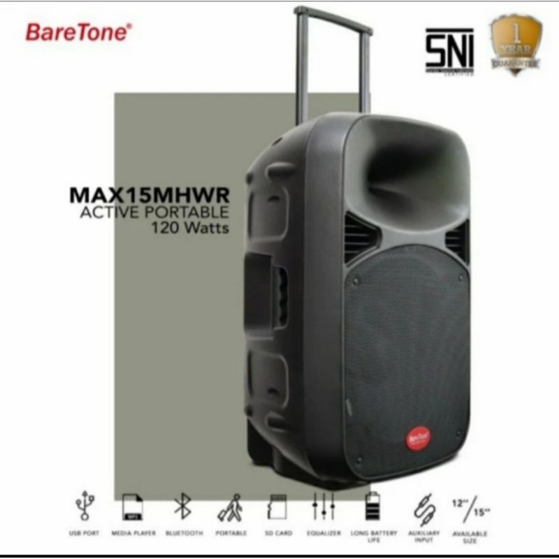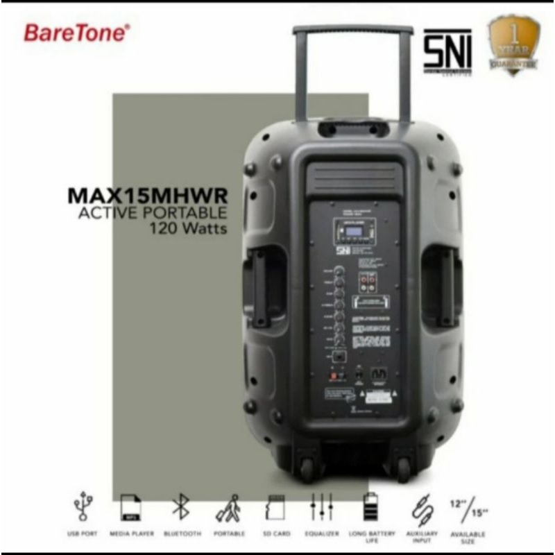 speaker portable wireless 15 inch baretone max15mhwr bluetooth original