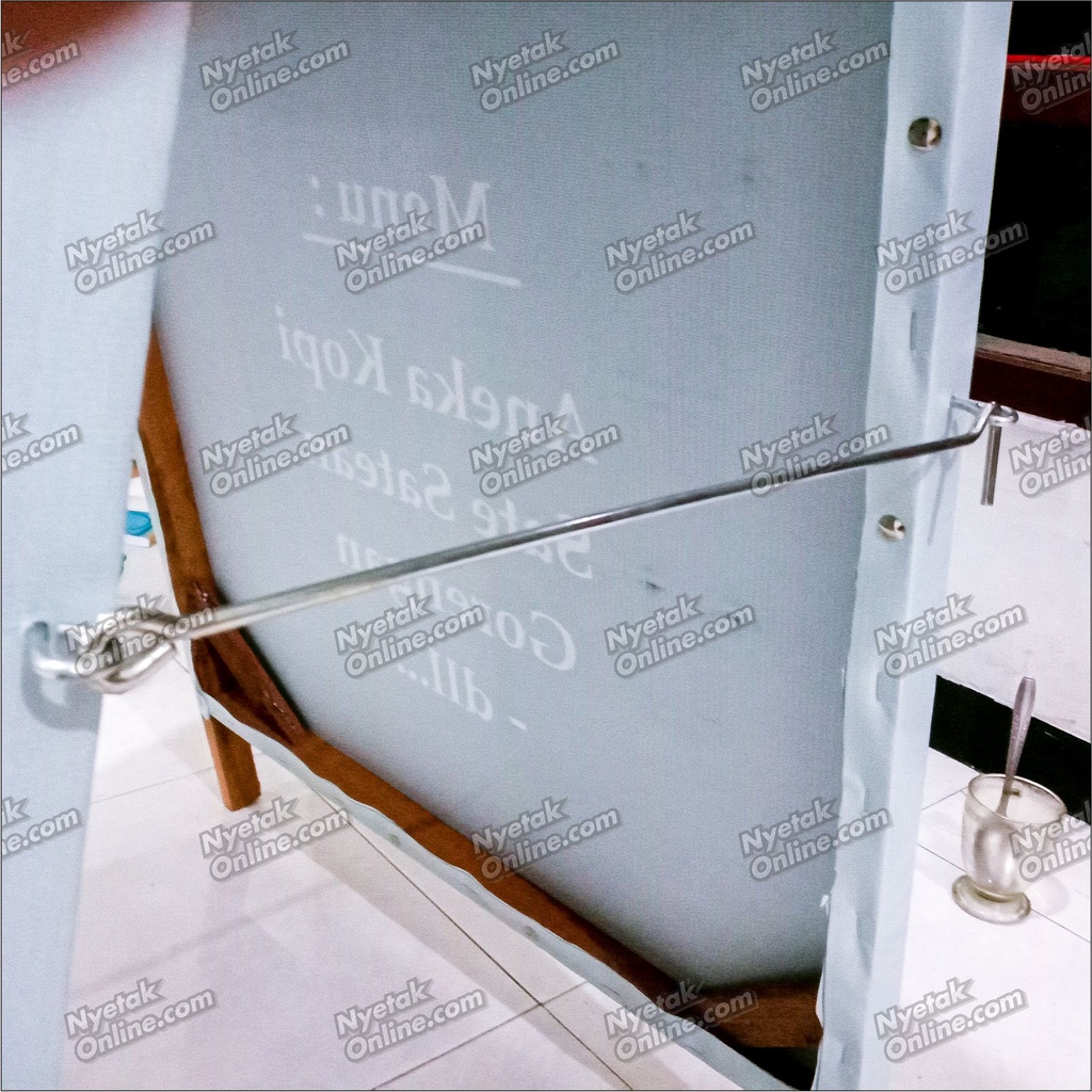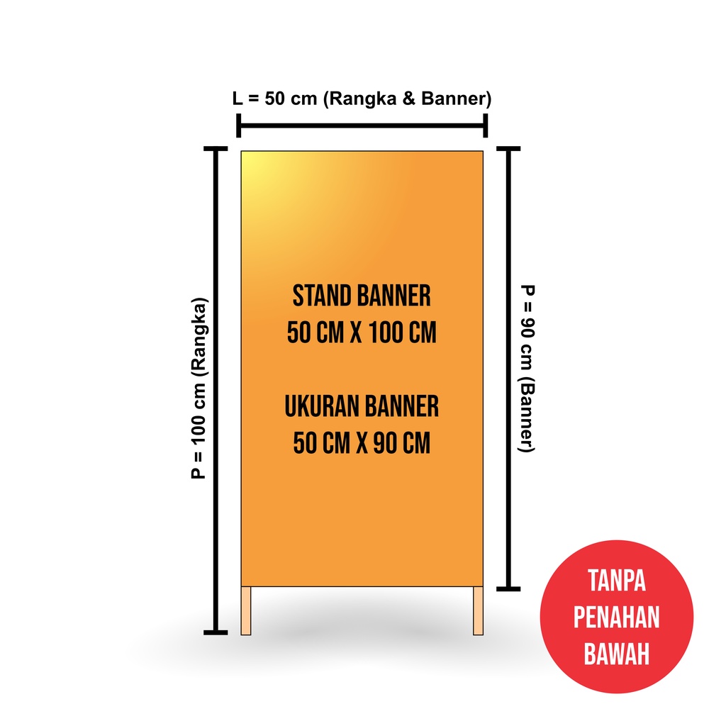 stand banner kayu segitiga ukuran 50cm x 110cm 2 sisi