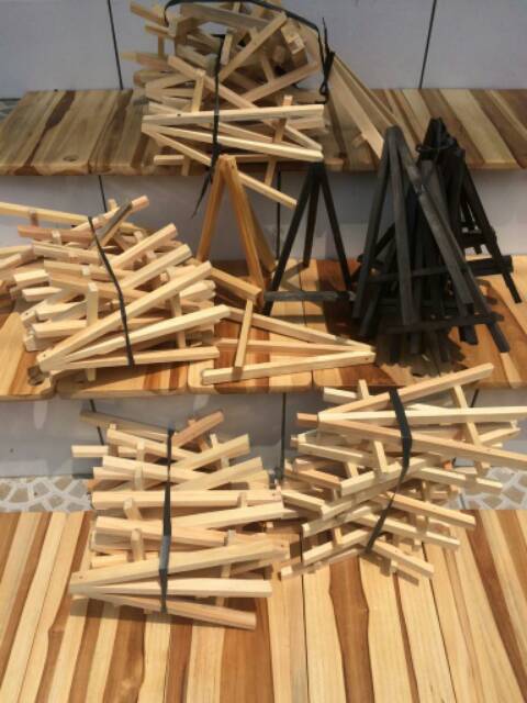 stand kayu 26x16 tripod kayu standing pigura frame souvenir jam kayu sandaran table hp
